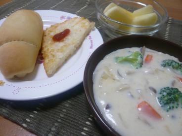 今日のランチは昨日作ったロールパンでシチューにしました写真は坊ちゃん用です坊ちゃんは最近パンの時、汁物とかに浸して食べてます。そんなこと教えてないのに自分でいろいろ考えて食べてるんだな~とちょっと関心しちゃいました。シチューは野菜ときのこが入ってます。最近、坊ちゃんはきのこがブームみたいしいたけやしめじ、えのきなどのきのこ類を酒蒸ししてちょっとのお塩をぱっぱとふっただけのシンプルおかずが好きなようです。あと今まで食べなかったほうれん草も最近食べてくれるようになりました。ほんとに子供の好みってすぐ変わるもんだからこっちがびっくりでも一時期の炭水化物過多な食生活からはちょっと抜け出せたような気がします。よかったよかった design by sa-ku-ra*