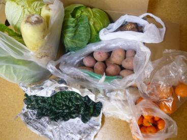 今日から旦那さんも長期連休にはいりました。でも残念なことに坊ちゃんとわたしは風邪気味わたしは喉が腫れてるだけなのでたいしたことないのですが坊ちゃんの咳がすごくて夜中も咳と鼻水であんまり熟睡できてない様子食欲だけはあるので心配ないと思うのですが、、、今、旦那さんが病院に連れて行ってくれてますこないだ旦那さんの実家からお野菜をたくさんいただきましたとってもありがたいですね~~。すっごくたくさん手前の緑のフサフサした葉野菜が何の野菜なのか不明ですが。。。でもうれしいですね~。助かります。じゃがいもも赤いじゃがいも!これおいしいんですよね~~。みかんも普通のMサイズのみかんと超小さいみかんを貰ったよ。この小さいみかんがまたかわいい~~Mサイズ1個で3個分くらいの大きさです。しかも甘いので坊ちゃんもバクバク食べる食べる。坊ちゃんがチビみかんを気に入ったと言ったらまた1箱送ってくれるみたいです。やったぁこないだこの白菜と大根を使って早速お料理しました。豚バラと白菜のあっさり煮大根ステーキ豚バラと白菜の煮たのは我が家の冬の料理の定番なのですが、、、大根ステーキはクックで見て簡単でおいしそうなので作ってみました。大根だけなのにすっごくおかずになる1品でしたちなみに昨日はいただいた里芋で煮っころがしにしましたよ~。あとうちの母からも果物をたくさんいただきました。りんごは昨日パウンドケーキに入れてみたよ。でも型からはずすときに手を滑らしちゃって失敗。。。りんごとにんじんのパウンドケーキ人参はちょっと分かりにくいけどほんのり黄色っぽくなってます。でもこれすっごくおいしかったですわたし1人で半分くらい食べてしまいました。この休みはあんまり買出しにも行かなくてよさそうなのでありがたいです~。でも冷蔵庫はパンパン状態です design by sa-ku-ra*