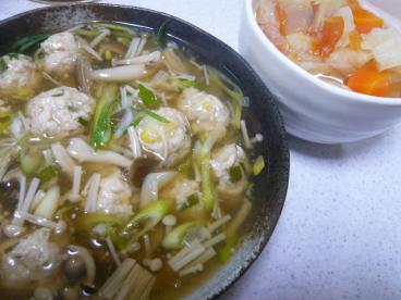 今日は旦那さんが忘年会だったので夕飯は簡単にすまそうと思って簡単にできるものにしました~「鶏団子ときのこのとろとろあんかけ」ですきのこは生しいたけ・しめじ・えのきを入れました。きのこ類の中ではこの3つが一番食べやすくてお手頃価格なので大好きです。坊ちゃんと二人仲良く取り分けながら食べました坊ちゃんはきのこが好きなのでもりもり食べてくれました~。これはこの冬の定番になりそう。温まるし、栄養満点だし、ヘルシーなのでもっといろいろお野菜入れてもいいかも坊ちゃんはこれの他に白菜と豆腐のお味噌汁を食べました。わたしはダイエット用のスープ(写真奥です)。今日はセロリが68円と安かったので久しぶりに作りましたよ。これ食べると汚い話だけどものすっごくおならが臭いんです体の中の毒素がでてる証拠なので仕方ないのだけど。。。今日は一味唐辛子をかけて食べてみました。そしたらものすごい汗かきました。品数少ないんだけどお野菜はいっぱい取ったからまぁよしとしました design by sa-ku-ra*