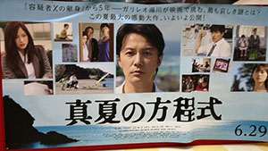 どうも昨日は疲れていたらしくあまり考えもせずに映画館に行ってしまった。するとファーストデイだった。私は前売り券を2枚持っていたのだがせっかくのファーストデイだし偉大なるギャッツビーでも観ようかと思った。だが・・・やっぱ真夏の方程式が一番観たいという事に気づいた。だが前売り券で観ると何か損な気がしてうっかり普通にチケット買って観てしまった。で、思ったのだが2度見るのも悪くないかもと思うような映画内容だった。湯川准教授がドラマ版と違って空気も読まず数式も書かないし、変に上から目線じゃない。論理的で珍しく少年と絡む湯川准教授はツボだった。決して甘やかすわけではないんだけど少年と対等に接してる湯川准教授はなかなかいいぞ。前田吟さんの渋い演技に涙腺がゆるんでみたり、すごく出番は少ないけど北村一輝さんの顔をスクリーンで拝めるのもまた良し。一番、良かったのが吉高の演技が落ち着いてて観ていてホッとした。ドラマ版もこのくらいのテンションでやってたら良かったのにと思った。