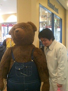 どうも、つっちんです。近頃、執筆活動が滞っております。(誰やねん?)読者の皆様には多大なご迷惑をかけていることをお詫びします。(だから誰やねん?)では続きです。◇◆◇◆◇◆◇◆◇◆◇◆◇◆◇◆僕のおみくじは比較的わかりやすいものだったのですか、マイコーとおっちゃんのは難しい内容だったので亀ちゃんに解説してもらいました。西宮会館で一息つくことに。時間は一時半。ふぁんふぁんに電話をすると、土日祝日は夜しか営業していないとのこと。がびーん( p_q)昨夜に先生から聞いた『~・チャイナ』にも電話してみたが、2~5時は休憩とのこと。がびーん( p_q)一度本屋さんに行き、店を探すことに。西宮神社にお別れをして駅に向かう。途中、綿菓子屋の屋台を見て「そういえば虎さんが綿菓子食べたいって言っていたような…」そんな事を話すと、亀ちゃんがお土産にと買ってくれた。雑な綿菓子屋さんに綿菓子をもらう。どの屋台を見ても少し強面の人が多いなぁ…たこ焼き屋さんなんて言い合いの喧嘩してたもん。そんなこんなで本屋さんへ到着。あまから手帳etc.で店を探すがあまりない。一生懸命探していると、まな太郎のおっちゃんがあいも変わらずに、空気止め発言。「無視しちゃうよ。」ん!?何だ今のは!?亀ちゃんだ。空気止め発言連発のおっちゃんに、亀が言った言葉。これ以上ない優しい口調で、これ以上ない厳しいお言葉。言われていない僕まで凍ってしまいました(+_+)あまり良い店が無いので、つる万両に行く事にしました。亀ちゃんもついてきてくれました。ありがとです。四人で仲良く食べました。亀ちゃんはつる満両での思い出話や、Gトークをしてくれました。話が盛り上がる中、一人だけ黙っている。おっちゃんだ!!亀ちゃんの「無視しちゃうよ。」がきいたのかずっと黙っていた。頑張れ!おっちゃん(=^▽^=)楽しい時間も過ぎ、駅で亀ちゃんとお別れをして樟葉に帰りました。続く(写真は本屋さんの前に置かれていた親子の熊の人形。 あまりに可愛いので写真におさめました。)