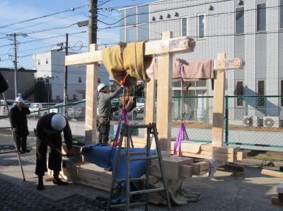 名古屋市内で薬医門を造っています。先日、大工の工場で屋根の仮組を確認しました。そして・・・いよいよ現場で組み立てが始まりました。工場で作った部材がスポスポ気持ちよく組み上がっていきます。しかし・・・「戸当たりに思いのほか節があって、気になるんです」担当の前嶋が報告してきました。写真で確認すると・・・「設計図にはヒノキの上小節と指示してあるけど・・・これは微妙だな」早速、建設会社の工事部長に電話を入れました。「そうですか。確認してみます」しばらくして電話がかかってきました。「ちょっと節が気になるようですから、取り替えます」「今からでも取り替えられますか」「大丈夫です。棟梁にも確認しましたので」素早い対応にホッとしました。ヒノキの無節と指示すれば、こういう問題は起きないのですが・・・工事費が高くなります。上小節は、多少の節は許容範囲のはず。木材納入業者から苦情が出ることもありますが。いつも、心を鬼にしてお客様第一で判断を下しています。【菅野企画設計】は、寺院建築・和風住宅・古民家再生を得意とする設計事務所です。≫≫ 菅野企画設計 HP≫≫ 寺院完成ギャラリー≫≫ Instagram(寺院)≫≫ Instagram(住宅)≫≫ Pinterest◆本社◆ 愛知県一宮市木曽川町黒田往還南60-3 TEL 0586-84-2003◇関東事務所◇ 横浜市中区太田町6-79アブソルート横濱馬車道ビル4階 TEL 045-264-9160