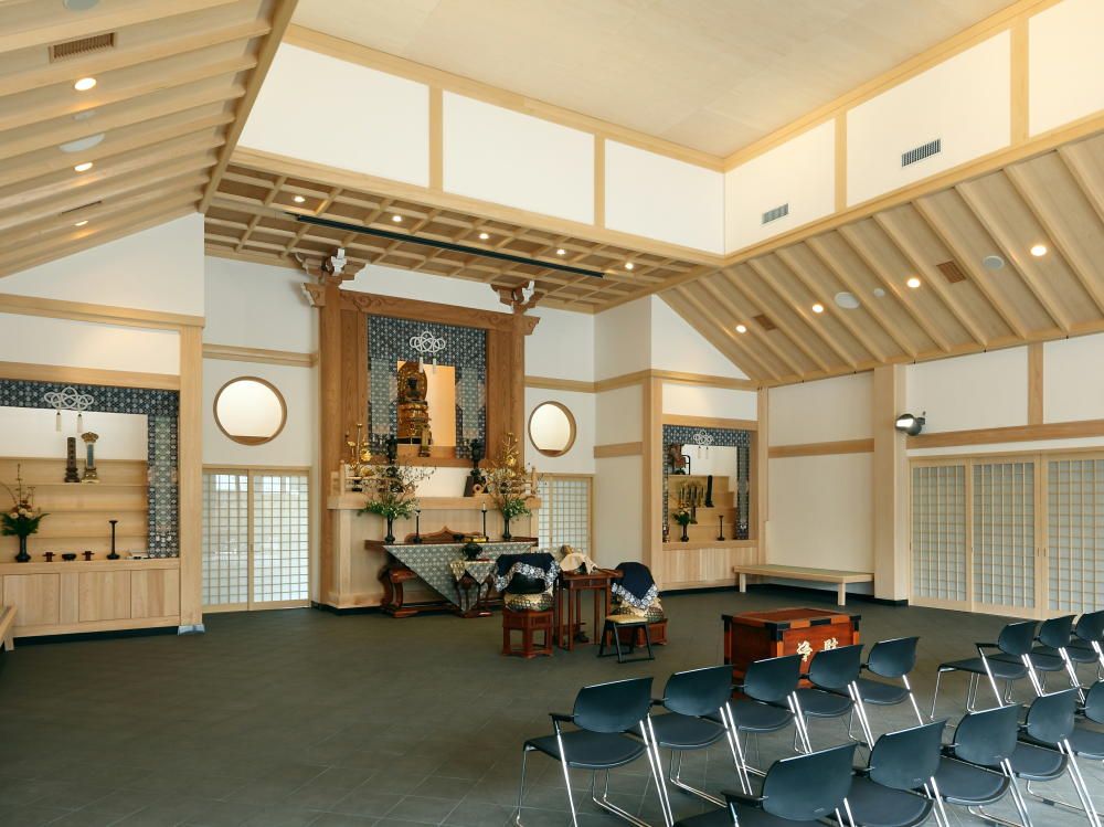 埼玉県富士見市の曹洞宗 大願寺の本堂を造っています。この伽藍は鉄骨造2階建てで、床面積は約548㎡(166坪)。1階に本堂、客殿などお寺の施設を配置し、2階は住職ご家族の住宅として使われます。工事は、岐阜県中津川市に本社を構える(株)中島工務店にお願いしています。いよいよ外部足場が外されました。道路に面している東側の外観は、住職、副住職ご家族と喧々諤々、こだわってデザインしたので・・・この日を心待ちしていました。「いい曲線になりましたねえ」「本当に苦労しましたよ」は現場監督。「大工さん、左官屋さん、屋根屋さん、職人の皆さんが丁寧にこつこつ作業していらっしゃいましたよ」は笑顔の副住職ご夫婦。外観はユニークなデザインですが本堂の中は・・・「桧の丸柱や彫刻の入った虹梁を使って、伝統的なデザインにして本当によかった」住職も出来栄えに満足してくださっている様子。見所の多い本堂がもう直ぐ完成です。【菅野企画設計】は、寺院建築・和風住宅・古民家再生を得意とする設計事務所です。≫≫ 菅野企画設計 HP≫≫ 寺院完成ギャラリー≫≫ Instagram(寺院)≫≫ Instagram(住宅)≫≫ Pinterest◆本社◆ 愛知県一宮市木曽川町黒田往還南60-3 TEL 0586-84-2003◇関東事務所◇ 横浜市中区太田町6-79アブソルート横濱馬車道ビル4階 TEL 045-264-9160
