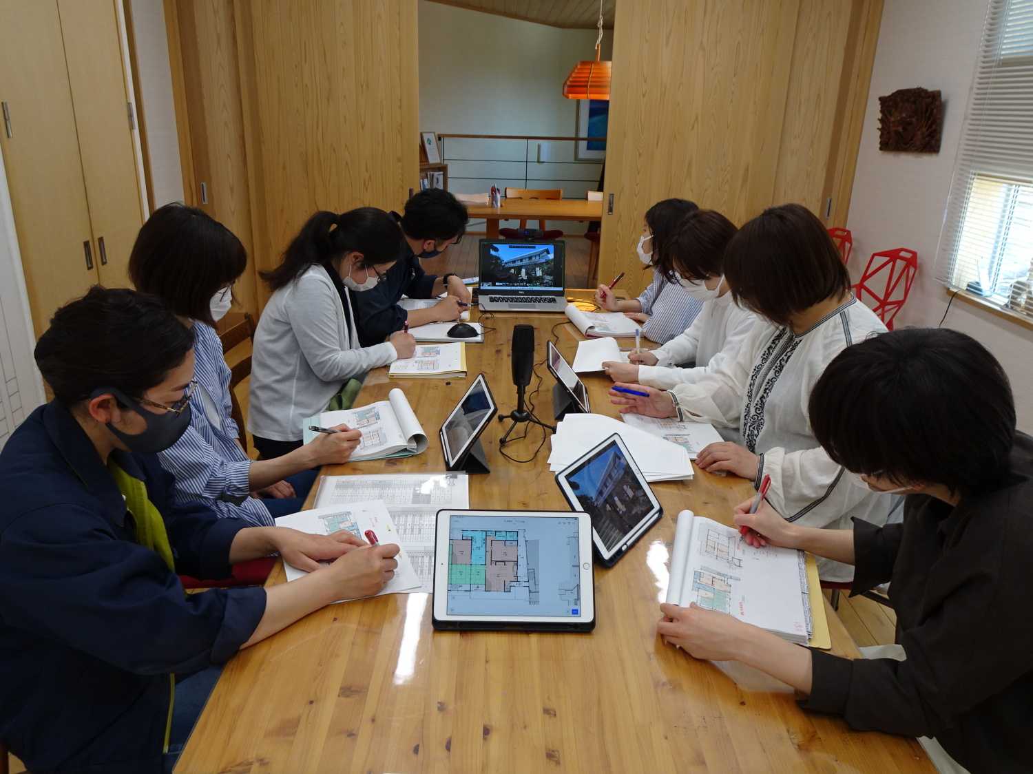菅野企画設計は今年の9月で創立35周年!!を迎えます。スタッフは16名に増え、完成した建物も随分多くなりました。振り返れば・・・ひとつひとつの建物には、お客様との出会いから完成まで、たくさんの思い出が詰まっています。そして、うんうん頭を捻ったアイデアも。そんなこんなをスタッフたちと共有したい!と思い、勉強会を始めました。横浜事務所と本社をオンラインでつなぎ、毎回、10名以上が出席します。最近は、スタッフたちが積極的にスケジュールを立て、資料を揃えてくれるようになりました。うれしいことです。今日は、教圓寺庫裡耐震改修工事を横浜事務所の植松が、願宗寺本堂新築を私が、石川邸新築工事を福田が説明しました。メモを取りながら真剣に耳を傾けるスタッフたち。これからの設計に、是非活かしてほしいと思います。【菅野企画設計】は、寺院建築・和風住宅・古民家再生を得意とする設計事務所です。≫≫ 菅野企画設計 HP≫≫ 寺院完成ギャラリー≫≫ Instagram(寺院)≫≫ Instagram(住宅)≫≫ Pinterest◆本社◆ 愛知県一宮市木曽川町黒田往還南60-3 TEL 0586-84-2003◇関東事務所◇ 横浜市中区太田町6-79アブソルート横濱馬車道ビル4階 TEL 045-264-9160