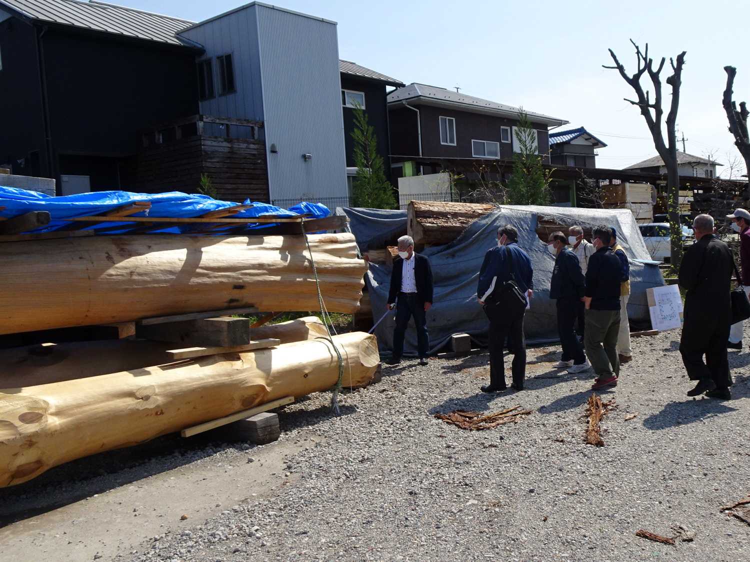 愛知県江南市の臨済宗 永正寺で木造本堂を造ります。工事は地元の(株)アイチケンにお願いします。住職と役員の皆様に、木材納入業者(株)いちい の倉庫まで足を運んでいただき・・・木材検査を行いました。先日、プレ検査を行い、問題ありの木材は既に取り替え済です。桧の柱、差し鴨居、化粧梁を見てもらうと・・・やけに無口な皆様。「あまりに凄すぎて、言葉が出ないんですよ!」と住職。「柱が想像していたより太くて長くて・・・こりゃあ、とんでもない本堂になりそうだねえ」と役員の皆様。最後に松の丸太を見てもらいました。「この丸太が天井に露出します」と説明すると「凄いなあ!せっかくだから、伊勢神宮のように御木曳しましょうよ」「13mもある丸太を乗せる台車があるかなあ」木材検査は、大いに盛り上がりました。【菅野企画設計】は、寺院建築・和風住宅・古民家再生を得意とする設計事務所です。≫≫ 菅野企画設計 HP≫≫ 寺院完成ギャラリー≫≫ Instagram(寺院)≫≫ Instagram(住宅)≫≫ Pinterest◆本社◆ 愛知県一宮市木曽川町黒田往還南60-3 TEL 0586-84-2003◇関東事務所◇ 横浜市中区太田町6-79アブソルート横濱馬車道ビル4階 TEL 045-264-9160