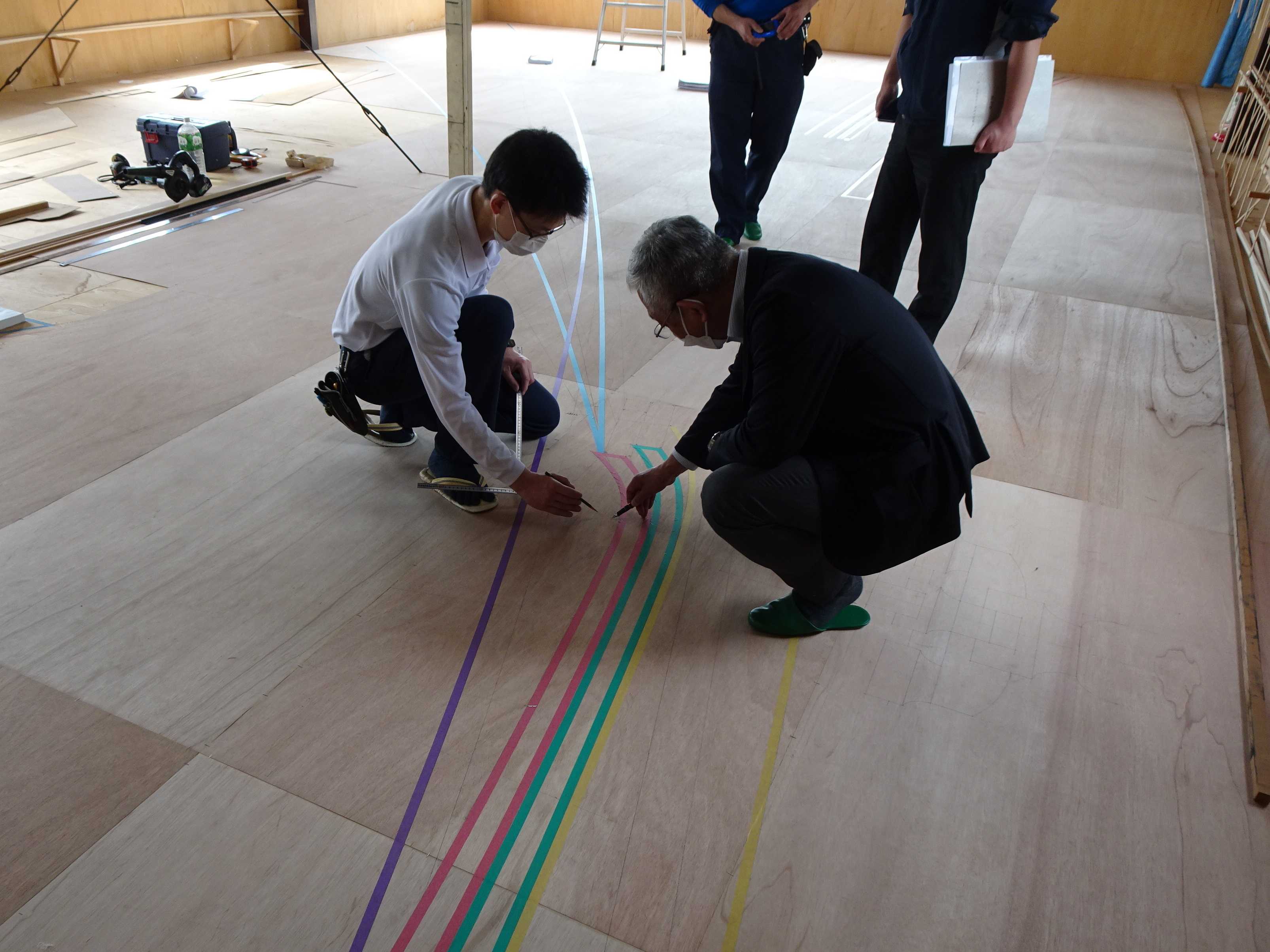 山口県岩国市の浄土真宗本願寺派 光福寺の本堂を新築します。光福寺本堂は、水害に備えた2階建てで・・・境内から高さ3mの鉄筋コンクリート造基壇の上に伝統的な木造で建てます。屋根は寄棟造りの瓦葺きで、床面積は約300㎡(91坪)です。工事は競争見積もりの結果、愛知県江南市の(株)アイチケンにお願いします。前嶋とアイチケンの工場を訪ね、原寸検査を行いました。原山棟梁が設計図に基づいて屋根の反り、軒反り、縋る破風、化粧隅木の原寸図を描いてくれました。棟梁の説明を聞きながら、原寸図をひとつひとつチェックしました。「向拝の軒先の勾配は?」「3寸を少し切っています」「それはまずいなあ。飛鳥瓦は軒先の勾配が少し返るから・・・」向拝屋根の反り元や縋る破風の箕の甲を調整して・・・「よし、これでいこう!」【菅野企画設計】は、寺院建築・和風住宅・古民家再生を得意とする設計事務所です。≫≫ 菅野企画設計 HP≫≫ 寺院完成ギャラリー≫≫ Instagram(寺院)≫≫ Instagram(住宅)≫≫ Pinterest◆本社◆ 愛知県一宮市木曽川町黒田往還南60-3 TEL 0586-84-2003◇関東事務所◇ 横浜市中区太田町6-79アブソルート横濱馬車道ビル4階 TEL 045-264-9160