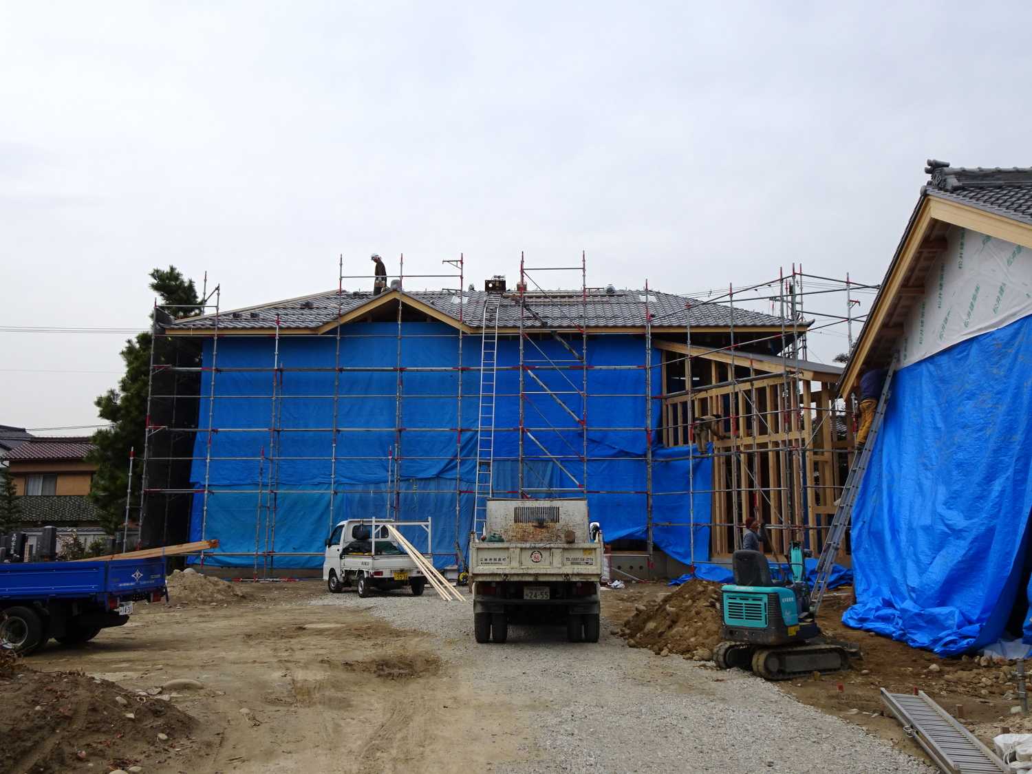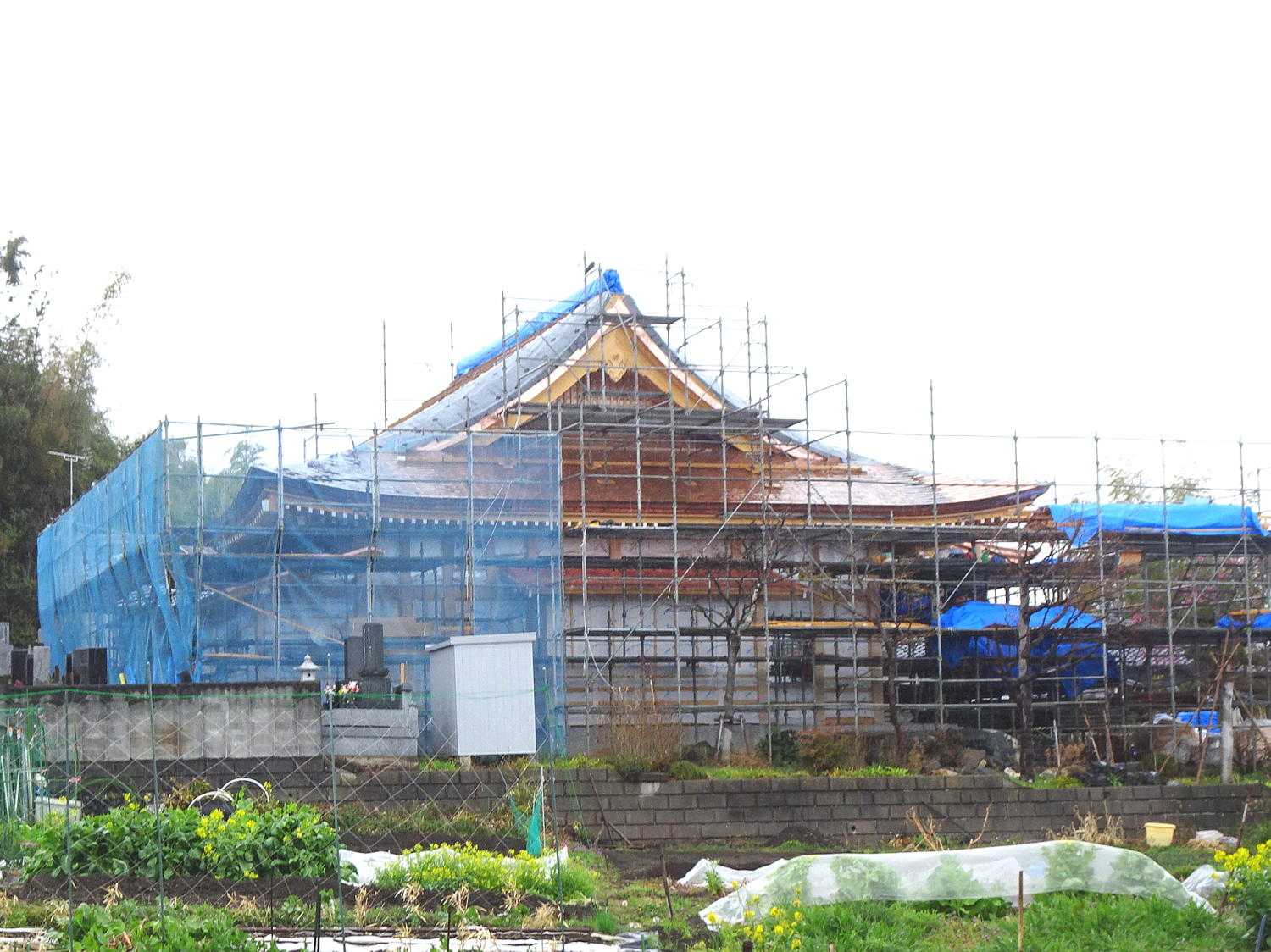 茨城県日立市の真宗高田派 覚念寺で木造本堂を新築します。工事は石川県能美市の松浦建設(株)にお願いしています。現場では大工が造作工事を始め、屋根の上では銅板葺きが進んでいます。川島、長岡を伴いお寺へ。あいにくの雨でしたが、葺いたばかりの銅板が鈍く光っています。軒付は既に葺き終わり、シャープな曲線を描いています。足場に上り、軒付の銅板葺きをチェックしました。「直すところはありませんか?」銅板葺きは石川県加賀市の砂上板金にお願いしています。熱の有る職人さん、丁寧な施工にうれしくなりました。覚念寺は、箕甲の落ちを大きくデザインしました。「どんな感じになるのか?銅板の葺き終わりが楽しみですよ」と芦田棟梁。工事は完成に向けて着々と進んでいます。【菅野企画設計】は、寺院建築・和風住宅・古民家再生を得意とする設計事務所です。≫≫ 菅野企画設計 HP≫≫ 寺院完成ギャラリー≫≫ Instagram(寺院)≫≫ Instagram(住宅)≫≫ Pinterest◆本社◆ 愛知県一宮市木曽川町黒田往還南60-3 TEL 0586-84-2003◇関東事務所◇ 横浜市中区太田町6-79アブソルート横濱馬車道ビル4階 TEL 045-264-9160