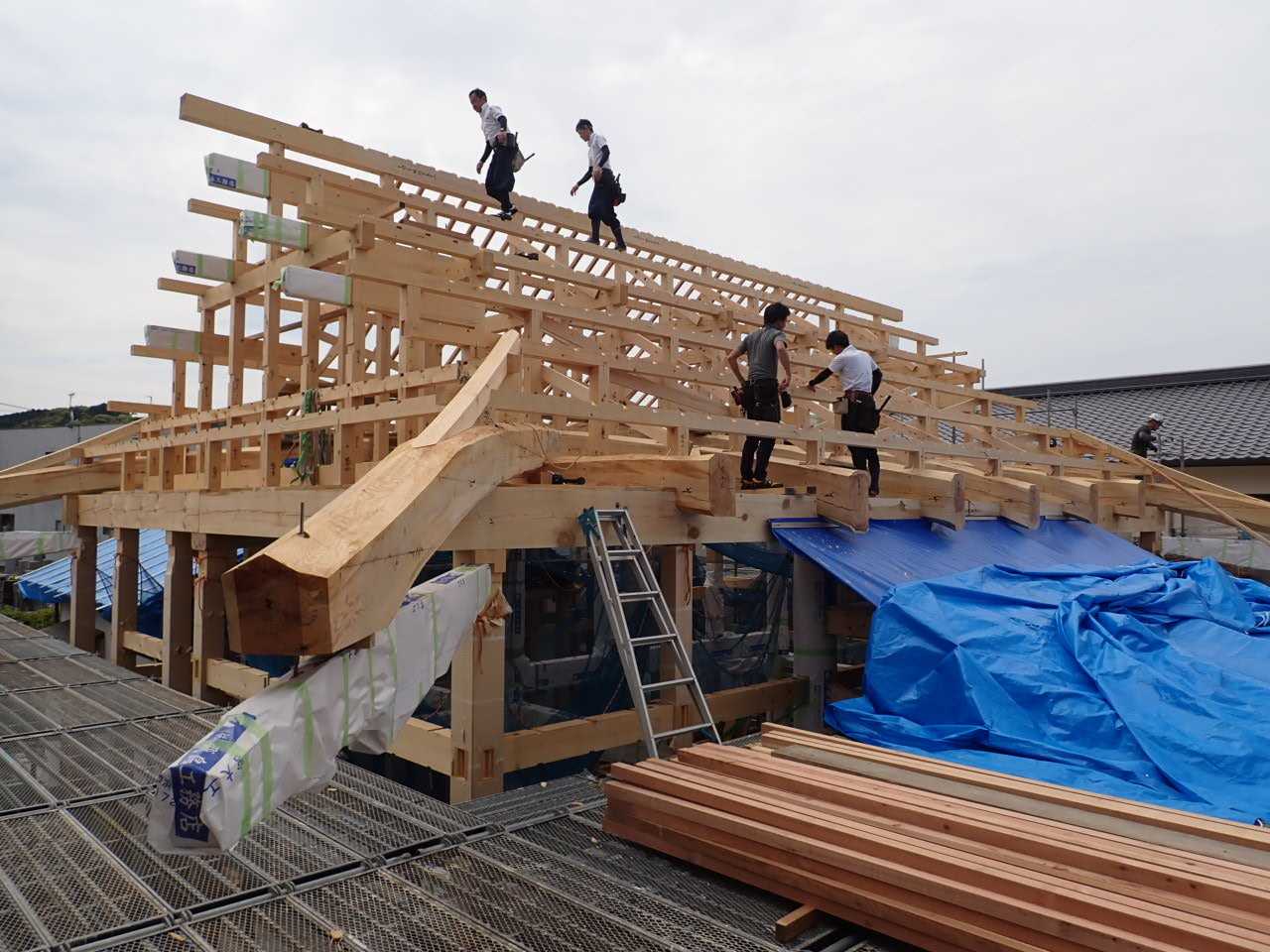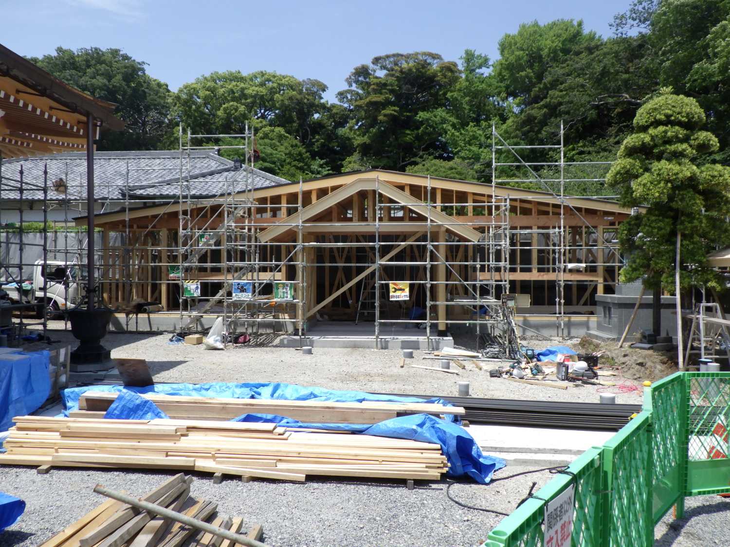 静岡市の曹洞宗 東光寺で本堂を新築します。工事は静岡県掛川市の株式会社 飛鳥工務店にお願いします。小屋組みがどんどんできてきました。「最近は本堂新築の仕事が少なくて・・・遣り甲斐がありますよ」と棟梁。「それにしても、菅野さんの設計は難しい(笑)」しかし・・・野隅木をご覧ください。太い木材の天端を屋根の反りなりに削り込んでいます。「難しい仕事をしたもんだなあ!」「わかってもらえますか(笑)苦労しましたよ。でも、絶対に丈夫ですから」その他にも・・・プロが唸るような仕事が随所に!熱のある造り手に恵まれていることを幸せに思います。【菅野企画設計】は、寺院建築・和風住宅・古民家再生を得意とする設計事務所です。≫≫ 菅野企画設計 HP≫≫ 寺院完成ギャラリー≫≫ Instagram(寺院)≫≫ Instagram(住宅)≫≫ Pinterest◆本社◆ 愛知県一宮市木曽川町黒田往還南60-3 TEL 0586-84-2003◇関東事務所◇ 横浜市中区太田町6-79アブソルート横濱馬車道ビル4階 TEL 045-264-9160