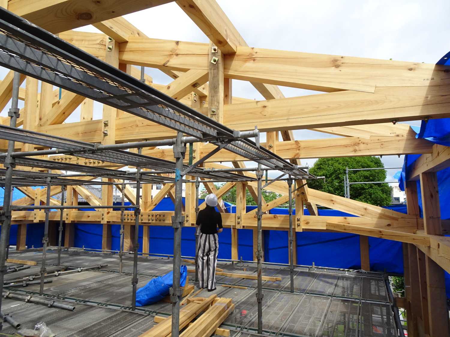 栃木県小山市の日蓮宗 妙建寺で木造本堂を造ります。工事は競争見積もりの結果、石川県能美市の松浦建設株式会社にお願いします。妙建寺の旧本堂の格天井には、大変貴重で珍しい天井画が描かれていました。その格天井を新本堂に復元するとともに、仏事がよりスムーズに行える間取りを追求した結果・・・11.2m×11.4mを無柱で設計することになりました。当初は鉄骨造で検討していましたが、鉄骨造で本堂を造るような、難易度の高い作業を避ける社会状況になっていることを受け、急遽、木造に設計変更!そこで、小屋組みに採用したのがトラス構造。構造の合理性と、日本建築ならではの屋根の反りや深い軒を実現するため、検討に検討を重ねました。ついにそのトラスが現場に姿を現しました。【菅野企画設計】は、寺院建築・和風住宅・古民家再生を得意とする設計事務所です。≫≫ 菅野企画設計 HP≫≫ 寺院完成ギャラリー≫≫ Instagram(寺院)≫≫ Instagram(住宅)≫≫ Pinterest◆本社◆ 愛知県一宮市木曽川町黒田往還南60-3 TEL 0586-84-2003◇関東事務所◇ 横浜市中区太田町6-79アブソルート横濱馬車道ビル4階 TEL 045-264-9160
