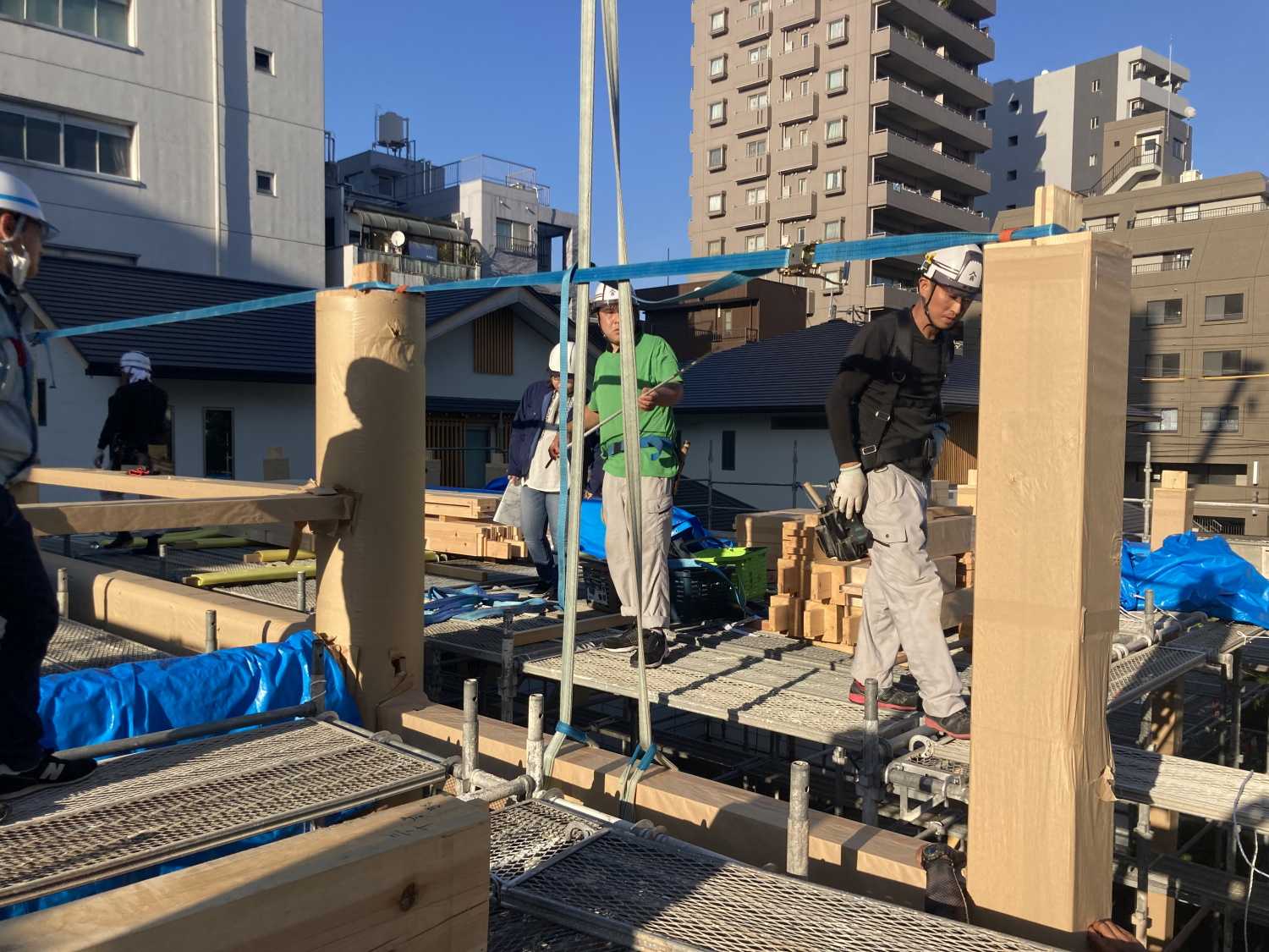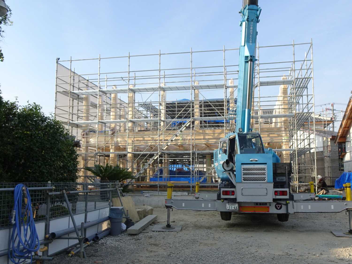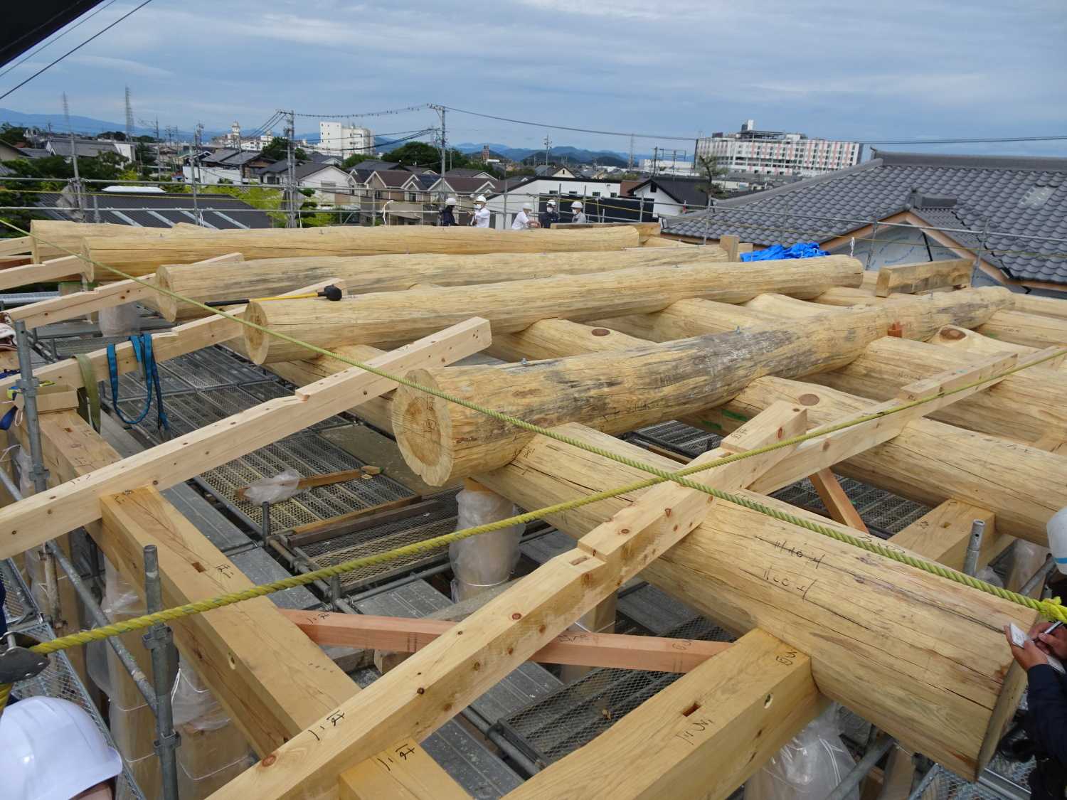 愛知県江南市の臨済宗 永正寺で木造本堂を造ります。工事は地元の株式会社アイチケンにお願いしています。「小屋丸太が組みあがりました」東松から報告を受け・・・早速、現場を訪ねました。「なかなか体験できない貴重な工事現場なので、機会を見つけて見学するように」スタッフ達に伝えてあるので、伊藤、大江、野口、浅井が同行しました。本堂の天井から、長さ13mの巨大な松の丸太4本が姿を現すデザインです。「作業は順調ですか?」「はい、半日で丸太を組み終わりました」は工事監督。「工場で仮組した甲斐があったねえ」「しかし、丸太を境内に運び込むのに苦労しました」この日は、大手建設会社の皆さんが視察に来ていました。注目を集めるようなお寺の設計に関わることができ、うれしい限りです。【菅野企画設計】は、寺院建築・和風住宅・古民家再生を得意とする設計事務所です。≫≫ 菅野企画設計 HP≫≫ 寺院完成ギャラリー≫≫ Instagram(寺院)≫≫ Instagram(住宅)≫≫ Pinterest◆本社◆ 愛知県一宮市木曽川町黒田往還南60-3 TEL 0586-84-2003◇関東事務所◇ 横浜市中区太田町6-79アブソルート横濱馬車道ビル4階 TEL 045-264-9160