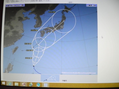 先週の18号に続き、19号がひたひたと近づいてきていますこのままだと、私の住んでいる地域周辺を直撃します9日18時現在、「猛烈」な強さで、中心気圧が910Hpaとのこと。台風の目もまんまるで、はっきりしています。18号も全国各地に大きな被害を与えました。予想進路にあたるところでは、命を守る早め早めの対策が必要だと思います。みなさん気をつけましょう