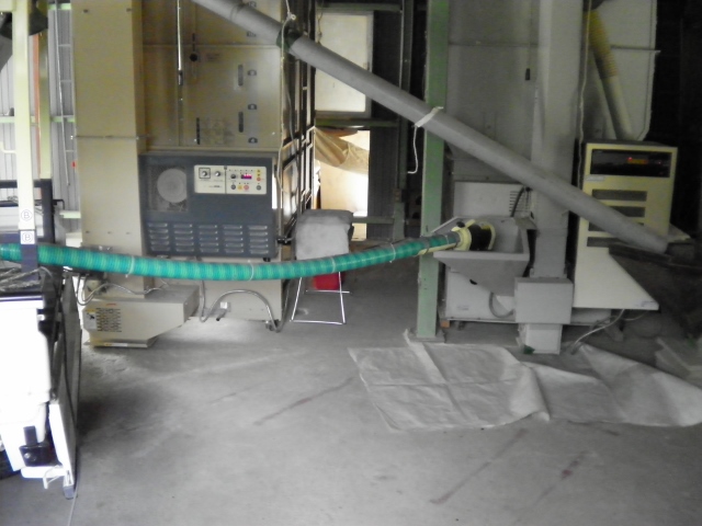 ご近所さんに4haのキヌヒカリを作っておられる方がいます。先日、書いた小規模集落元気作戦の稲刈りで、コンバインでの刈り取りやモミの乾燥、もみすりを請け負ってくれた方です。それも、ほとんど一人で田植えして、管理し、稲刈り、もみすりをされます。この写真も先日紹介したものですが、軽トラで運搬してきたモミを乾燥機に投入します。乾燥ができたモミは、昇降機によって作業小屋の2階に運ばれます。このタンクが一杯になったら、下の扉を開け、1階にあるモミスリ機の受け口にパイプを通って落下します。後は、30kgの袋に詰めてフォークリフトで、貯蔵庫に入れます。ほとんど重たいものは持たなくて済む工程を作られています。私のような中途半端な作付面積の者が、しんどい仕事をしているようが気がします