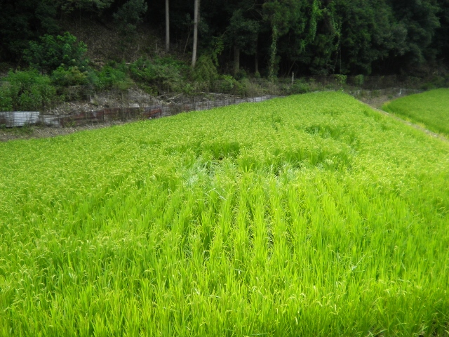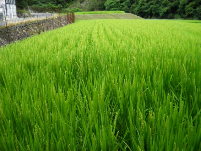 台風12号の影響で久々の雨です。田植え後10週目に入り、出穂期から穂揃期になっています。家の下です。大久保です。西です。3枚の田んぼの穂の様子は、こんな感じです。前にも書きましたが、今年は昨年より4日から5日、穂が出るのが早かったです。これは、穂肥のせいかどうかはわかりませんが・・・・・毎年、9月の中旬が稲刈りなのですが、稲刈りを早めるべきなのか、よくわかりません。いずれにしても、稲刈りまで鳥獣被害にあわないことと、台風などの影響で倒伏しないよう祈るばかりです。
