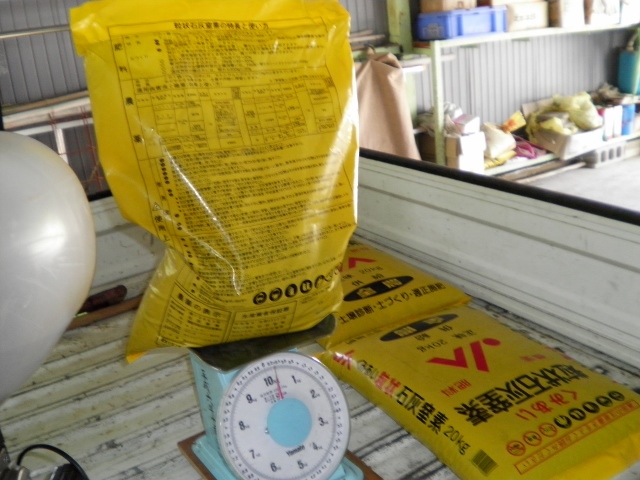 jaに予約注文していた土壌改良資材が配達されました。来年の水稲栽培に向けて散布します。今日はその準備をしました。トラクターにつける肥料散布機です。クリーンソワー(アグリテクノ矢崎製)と言います。普段はトラクターからはずしています。まず、下の部分をトラクターに取り付けます。そして、この上の部分をのせます。それから両端をこのようにパッチンで固定します。最後に散布するモーターを回すコードを接続します。トラクターのバッテリーが電源です。これがモーターのオン、オフのスイッチです。この散布表によって、トラクターの速さと散布機の開度を設定します。散布するアヅミンととれ太郎です。散布する様子はまた紹介したいと思います。