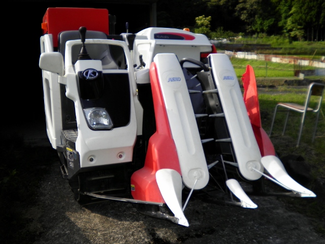 コンバインのバッテリーを充電したことは、先日のブログに書きました。日曜日は久しぶりにいい天気だったので、倉庫からコンバインを出して、必要なところに注油しました。我が家のコンバインです。クボタのエアロ2条刈り、袋どり、18馬力です。左の引き起こしチェーンのカバーを開けると、集中注油装置があります。緑の矢印がオイルを入れるタンク。黄色の矢印が注油レバーで、このレバーを押すと、刈り取り刃、引き起こしチェーン、株送りチェーンなどに注油される仕組みです。一部のチェーンは、このように手で注油します。この2か所から、刈り取ったモミが出てくるので、ここに袋を取り付けます。後ろからは、刈り取った稲をカッターで切り、排出されます。さあ、今週末は稲刈りです。いい天気が続けば、田んぼも乾いてくれそうです
