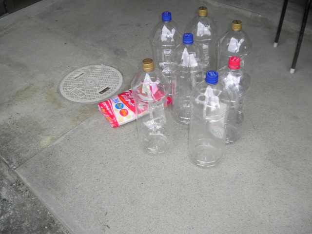 先日、近所に住んでいる我が町の農業委員会の会長さんが話してくれました。何でも、焼酎などの空きペットボトルに穴をあけ、中に防虫剤を入れて、猪が出没しそうな田んぼの出入り口にぶらさげておいたら、その防虫剤のにおいで猪が逃げてしまう、とのことでした。その真偽は半信半疑だったのですが、ご自身もすると言われていたので、だめで元々と思い直して、実践してみました。材料です。焼酎の4リットルか5リットルの空きペットボトルと防虫剤です。空きペットボトルは、焼酎好きな職場の同僚からいただきましたペットボトルに穴をあけています。穴の数は適当です。防虫剤のにおいが外へ漂えばOKです。穴をあけたら防虫剤を10個くらい入れ、ふたを閉めます。こんな風に田んぼの出入り口にぶら下げます。下の方にぶら下げているのは、猪は鼻で下からトタン板を持ち上げて侵入します。なので下にセットしていたら、防虫剤のにおいがよく効くと考えたからです。さて、その効果はいかに・・・・・?