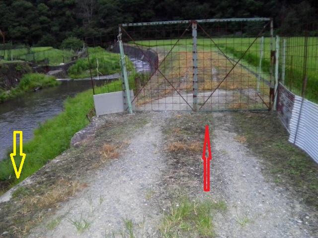 ついに我が家の田んぼにもイノシシが侵入しました西の田んぼなのですが、我が家の田んぼ入り口には、例の防虫剤入りのペットボトルをぶら下げるなどして注意していたのですが、隣接するお隣さんの田んぼの入り口のメッシュを壊して侵入したのですこんな状態です。朝の散歩時に発見しました。矢印の方向から侵入したと思われます。まったくイノシシの怪力にはびっくりです。侵入されたものの、なぜか稲を踏み倒すなどの被害はありませんでした。あぜの周囲を少し掘り返してミミズを探したような形跡がありました。さっそくお隣さんにこの様子を伝え、入り口の修復を依頼したことは言うまでもありません。稲刈りまで、あと1ケ月。毎夜、毎夜、心配な日が続きます。