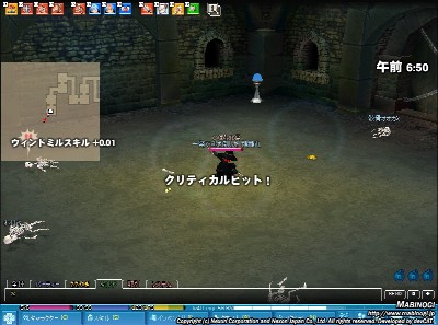 Ars Magna>チュートリアルを終えて、通常フィールドの基点となるセラニアン村に移動。ここには店やらギルドやらがいくつか存在するが、どうやらここを基点にLv100まで上げまければいけないらしい。一昔前のRPGらしいといえばそれまでだが、ゲームバランス上レベル上げに取られる時間が高めで、通貨やスキルを獲得する為にひたすらMOBを倒す時間が必要になる。最初のうちは地味にひたすら殴るだけの作業時間がかなりの割合を占めることになりそうだ。6年以上の運営実績があるだけにゲームの挙動などは非常に安定していてシステム的な不安感は無いが、現在のゲームと比べてしまうといろいろな面で(グラフィックだけでなく)物足りなさを感じてしまう。このゲームをやりこむには何かしらの割り切り(他と比べたりしないみたいな)が無いといけないのかもしれない。そういう意味では他のMMORPGからの乗り換えは正直少々厳しいものがあるのかなと言う感じがする。実際は生産やペットなどのシステムがあり戦闘一辺倒のゲームではないらしいのだが、全体に流れるなんとも言えない作業感が最近のストーリー・背景が作りこまれたゲームに慣れ親しんだ人には不親切に映るかもしれないと思った。まぁ、自分がMSXやらPC98とかでやっていたRPGなんてみんなこんな感じだったから懐かしいっちゃ懐かしいですけどね。今後は時々繋いでちょっとづつレベル上げていくことになりそうです。ZerA>Nexonジャパン運営の美麗3D系MMORPG要求するPCスペックがやや高めなのが個人的には不安。さて、β参加にあたって、クライアントDL&インスコに結局3時間以上かかりました。これで動かなかったら精神的ダメージはかなりのものになるところでしたが、とりあえずはちゃんと動きました。ヨカターヨ・゚・(ノД`)・゚・早速2時間ほどプレイしてみましたが、10%くらいしか理解できていない様な気がしてますので、あまり突っ込んだ事は書かないし書けません。とりあえず感じた事だけ箇条書きにしてみると。・戦闘関連システムしか確認できなかったのでおそらく戦闘特化型のRPGだと思われる。・当然戦闘システムは複雑かつ奥が深そう。・スキル連携やPT連携などを練習して『オレTUEEE・・』とやりたい人はすごくはまれるかもしれない。まだ初期クエ消化段階なので言えるのはこれくらいですかね。いくつかSS載せときます。1.自キャラ サマナー♂2.戦闘シーン 多タゲが基本みたい3.ヒールエフェクト4.レベルアップ5.ぼーっと尻を見つめて・・ コブラ(寺沢武一)を思い出してました。6.こんな場所も7.パンツが見えるか検証 見えます。ご安心を。また時間みつけてやろうと思います。