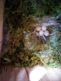 ふわふわしたもの・・・動物の毛を拾って巣材にするんですって。