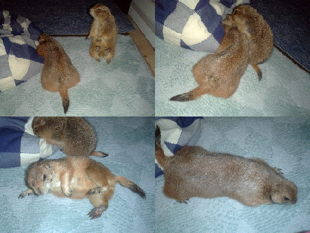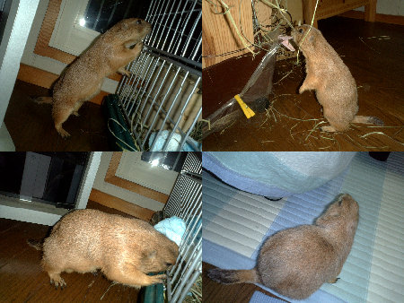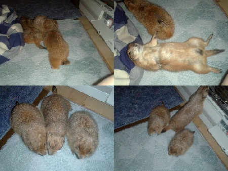 今日も蒸し暑かった。今日は午後から職安の人が来て、職業相談があった。なんと、それが終わったら帰ってもいいと言われ3時前に帰宅できた。でもこんな蒸し暑い中掃除当番があって大変だった。写真は上段左から1.武蔵 2.コジ・ム・キチ・ハナ 3.キチ・ハナ 4.ム・キチ(とっくみあいのケンカ中)by coolco