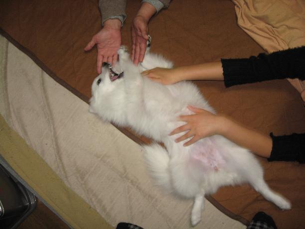 教え初めて半月、ようやくお手らしきものができるようになりました。しかし・・。何もいわずとも、お菓子を手に握り締めた段階で、勝手にお座り&お手らしきものをしてしまう。これは、命令といわず、条件反射というものなのではないだろうか?まあいいや。かわいいから!!