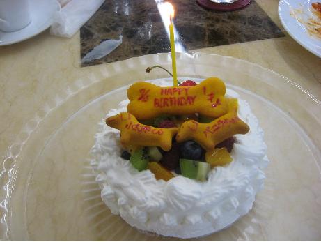 みなさん、こんにちワン!ご無沙汰しちゃったワンね。おかあさんが、パソコンが出火の恐れがあるっていって、最近、パソコン使ってなかったから、私もブログ、更新できなかったのワン。でもね、今日は特別な日なの。私、今日で1歳なのだワン!!うふ、もう餌も成犬用なのよ。一足先に、この前の日曜日、おにいちゃんと一緒にお誕生会してきちゃったワン!楽しかったワン!お姉ちゃん達が私達の代りにろうそくをふうってしてくれて、おいしいケーキを食べさせてくれたわン。あ、でもその前に・・おあずけ~~!だけど、おいしかったよお!お兄ちゃんと一緒ですご~く楽しかったワン!また遊ぼうね!