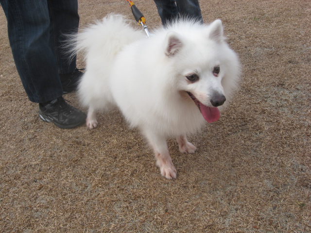 ちょっと前の話ですが・・。お出かけしたとき、白いフワフワワンコを発見!あっ、もしかしたらスピッツかも・・と思ったら、どうもそのワンコのオーナーさんも気になった様子。向こうから「この子、犬種は何ですか?」と聞かれました。「スピッツです」と答えたら、ちょっと残念そう。??「うちの子、ポメラニアンなんですけど、ポメにしては大きいんで、よくスピッツに間違えられるんです。もしかしたらポメかなあって思ったんですけど、スピッツだったんですね」そうなんですよ。うちはスピッツ。こうして並んでも違和感ないですよね。ああ、どこかで偶然に出会えないかなあ。スピッツに。