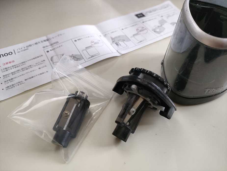 鉛筆削りも5年使用してると芯が削れなくなりました。予備の替え刃が付属してたので交換しました。交換方法は説明書に書かれてないので引っ張ったりして何とか交換出来ました。刃を交換すると綺麗に削れるようになりました。