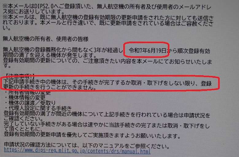 100g以上のドローンは3年前に国交省に機体登録義務になり有効期間は3年で今年6/19で切れる機体が多くなります。所有してる4機は早めに3年毎の更新申請完了で有料申請になります。更新が遅れたらさらに登録申請が必要ですが、古いドローンは全ての機体にリモートID機能設置しなければいけないので別途購入し機体に取り付けなければ申請許可になりませんので要注意です。写真下のドローンはリモートID装備されてませんが3年前の6/19迄に機体登録申請してたのでリモートIDは不要の特例がありました。新しいドローンにはリモートID機能が備わってるので問題ありません。