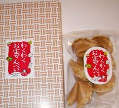 今日のおやつは、わくわくお宝せんべい新潟・(有)小林製菓所せんべいを割ると、紙に包まれたお宝が出てきます。「何が入っているかはお楽しみ!」と箱のだるまさんが言っています。お正月に、親戚が来るので、楽しそうなので購入しました。サイコロ・金の俵・おみくじ等。せんべい自体もサクサクして、味噌が入っているのには気がつかないのですが、卵せんべいのようで美味しいです。 お買い得情報 せんべい6袋\999(あと残り6個) 選べる本格手焼きあられ \3370 TV朝日「奥様鑑定団」で五つ星獲得!.....................................通常5ヶ月待ちのカフェ大福「みや太朗くん」など 楽天オークションで簡単に1円から入札できます