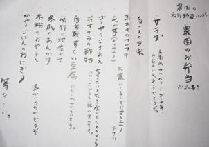 大阪府枚方市の杉・五兵衛のテラスハウスで食事を取りました。 「農園のお弁当」のお品書きです。農園内で取れた野菜が、薄味で味わえます。園内には、ぶどう狩りもできるようになっています。動物もロバやウサギなどがいるので、小さいお子様には楽しいでしょう。 北海道産・羊蹄山の麓・ルスツの栗ジャガほくほく【北あかりいも LM 5kg】 \1575 ="【送料無料】美味しい有機の根菜セットA \2310また、テラスハウスの方で、ライブも行われているようです。 杉・五兵衛http://homepage1.nifty.com/sugigohei/