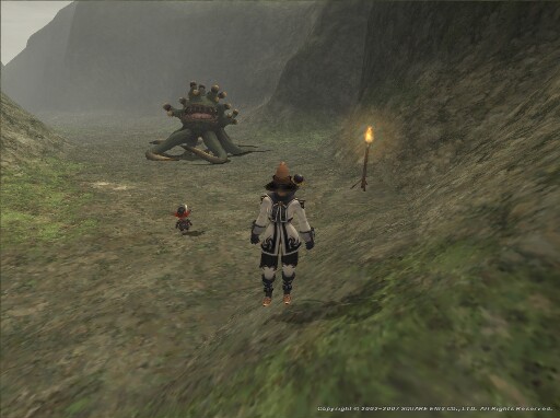 Jネコ「肝心なところで頼りにならないタルタル(´・ω・`)」Hタル「(つД`)」――最近、毎週お世話になっているリンバスLSでよく見かける会話。毎度お馴染みPボスのLS関係でフレになった廃(本人否定)タルHさん。何かとイベント好きなLS仲間Jネコさんの提案で、「廃と神スキルっぷりを証明するために」という名目の元、赤ソロでハードな戦いへ挑戦させられているそうなのです。その第一弾として挑戦しているのが、神印章30BC「屍臭病予防」のソロクリア。即死WSを使うモルボル一体が相手のこのBC。通常では、即死WS回避の為、召喚ONLYで召喚獣をあて続けて倒すのがセオリーとされている高難易度BC。それをソロで倒そうと言うのだから、本人が否定してもその発想と挑戦してみようという根性自体が廃魂に溢れています。本当にありがとうございました。で、印章があまっているというJネコさんの提供で、過去二度ほど挑戦したらしいのですが……。Pボス「タルタルがまたプリケツ晒しましたよ( ´ー`)」Jネコ「今日も肝心なところで駄目でした(´・ω・`)」なんていう報告が届く結果に(´Д`)毎度、6~7割削れるところまではいけるらしいのですが、そこで事故死というパターンなようです。(BC内には見届け人&戦後処理として、PボスとJネコさんも赤で突入。Hタルさんがプリケツ後、二人でしっかりモルボルを倒し、戦利品自体はゲットしているようですw)惜しいところで負ける=肝心なところで駄目ということで、すっかりそのキャラが定着してしまったHタルさん。さすがにプライドが許さないのか、この度、三度目の正直ということで再挑戦を行なうことに。丁度、一緒にいた私とセフィさんも、その見届け人として参加することとなりました。決戦の舞台はユグホト奥のホルレーの岩峰。人印章40BCで人気のある「光る眼」と同じ場所です。Jネコ「レイさんとSさんは黒で。私がグラバイでマラソンするので、精霊ピンポンで倒してください(´・ω・`)」R&S「ウィッス」と、突入前、早くもHタルさんが死んだ後の処理の作戦を打ち合わせる三人。Jネコ「きっと肝心なところで駄目なので(´・ω・`)」Hタル「(つД`)」チクチクいじめるのは、発奮を促すためだと好意的解釈しておきます。(´Д`)さて、BC突入後、私達外野は一切手出しせずに見守るだけ。赤/忍のHタルさん一人が、難敵モルボルに立ち向かいます。基本的な戦法は、赤ソロの王道、グラビデとバインドを駆使して距離をとりつつ、ポイズンIIとバイオIIのスリップダメージMPと相談でIII系の精霊も打ち込み、じわじわと削るというもの。このBCは、細長い通路があるので、マラソンはしやすい感じ。ただ、途中折り返しの部分で敵と接近しなくてはならないため、そこが要注意のようです。敵の一撃は重く、赤ならば2~3発で瀕死。それを回避する為のサポ忍のようです。更に、すれ違うタイミングで即死WS生臭い息を使われると万事窮す。臭い息を溜め込んでいる……というログ×3の後に使ってくるパターンなので、それを計算しつつ、すれ違うタイミングでWSを使われることがないようにするのがポイントでしょう。そんなわけで、バインド>スリップ魔法で順調にスタートしたのですが……。Hタルのコンバート発動!Hタル「うわっ、マクロ誤爆!!」開幕早々、痛恨のマクロミス(´Д`)10分に一度、MPとHPを入れ替えることで一気にMPを回復する神アビコンバート。削りの弱い赤ソロでは、このコンバートで稼げるMPを最大限生かして精霊を打たないと時間切れになりがち……まさに痛恨のミスです。Jネコ「肝心なときに……(´・ω・`)」レイリア「肝心なときに(´・ω・`)」Hタル「(´・ω・`)」と、開幕早々お通やムードでしたが……そこからが廃赤Hタルさんの腕の見せ所。完璧なマラソン。MPを見極めた精霊削り。さすが三回目と言うこともあり、ほとんど危なげなく順調に削っていきます。コンバ一回分のMPロストをものともせず、10分ほどで3割以上の削り。リフレ効果のあるAF2頭。移動速度UPの脚装備「クリムゾンクフィス」。廃の証明、素敵な装備の数々を生かし、安定した戦いを続けます。クリムゾン脚があるおかげで、グラビデなしでも追いつかれることなくマラソンが可能に。これが長期戦では大きくMP節約となっていたようです。二十分、二十五分。刻一刻と過ぎる時間。その中でも慌てることなく、着実な削りを続けるHタルさん。ギリギリMPが足りるか否か。バインドで時間を稼ぎ、ヒーリングで追い込み用のMPを確保。サンダーIII、サンダーII……残りはあと1mm足らずっ!MPも底をつき、コンバまであと数十秒。残り時間も@3分程。そんな極限状態で走り続け……遂に灰色ネームになるモルボル!見事、スリップダメージで削りきり、ソロ撃破の偉業を成し遂げたのでした( ´∀`)神赤誕生を祝福するように、戦利品も当たりのキャシーイヤリングが。Jネコさんの計らいで、Hタルさんに贈呈されることになりました。それにしても、本当にソロで倒せるとは……。Hタルさんの腕