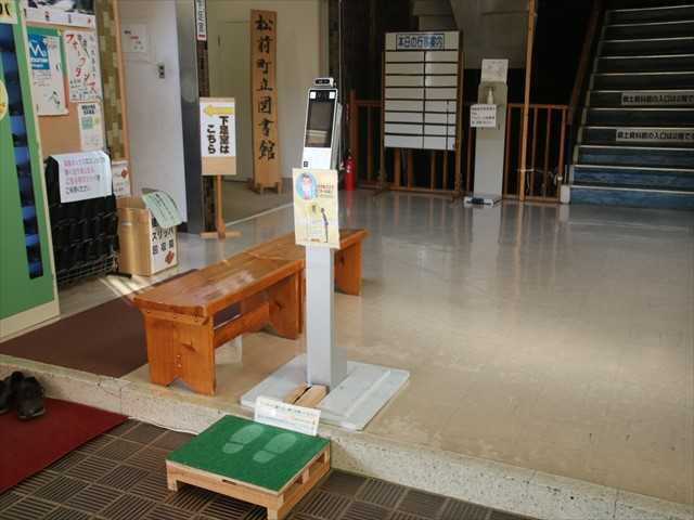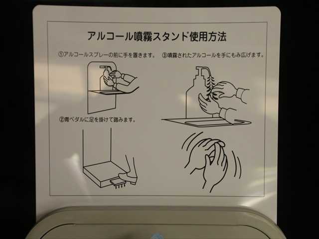 検温で異状なしで靴を脱ぎ、足でペダルを踏みアルコール消毒。
