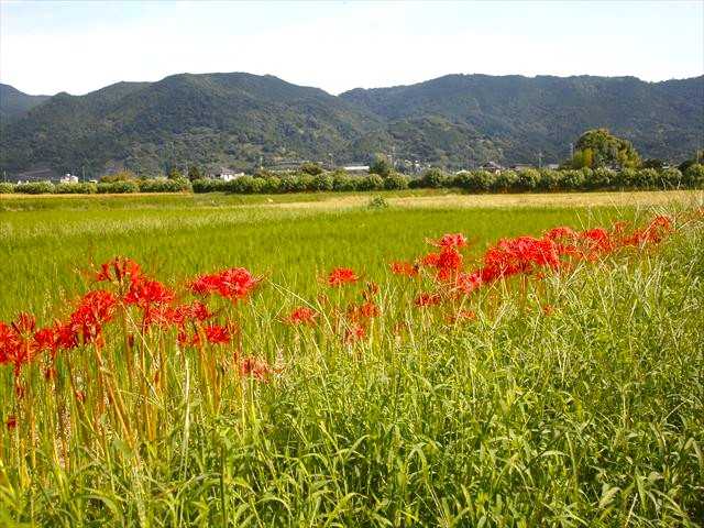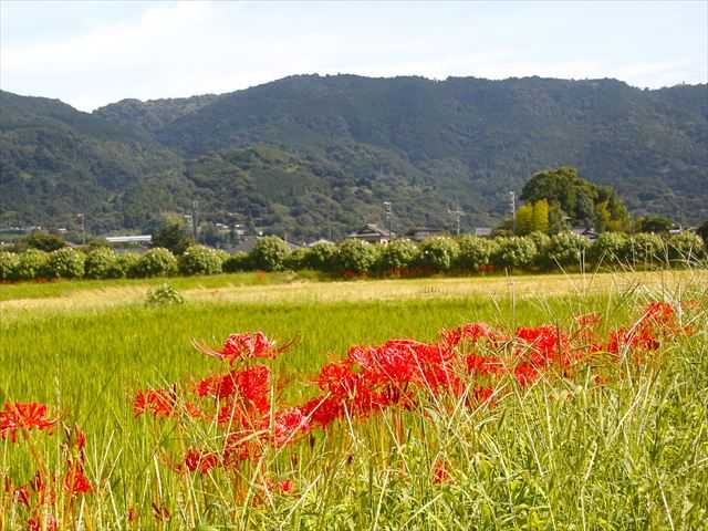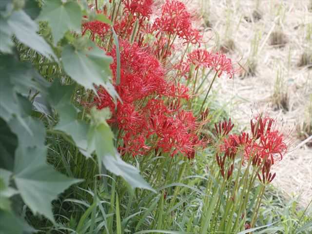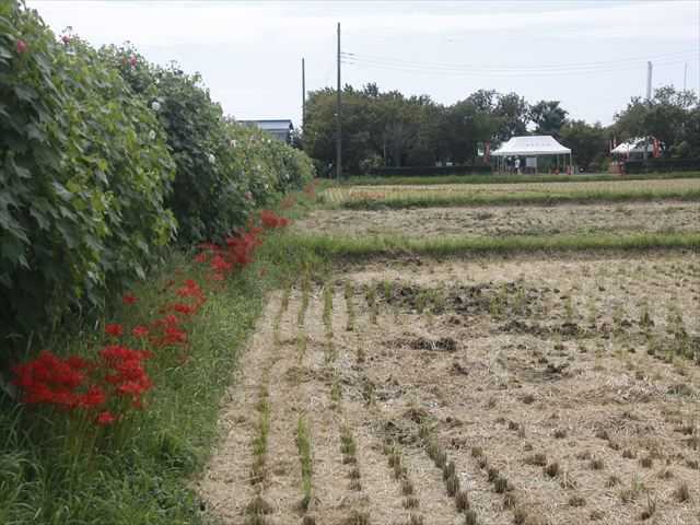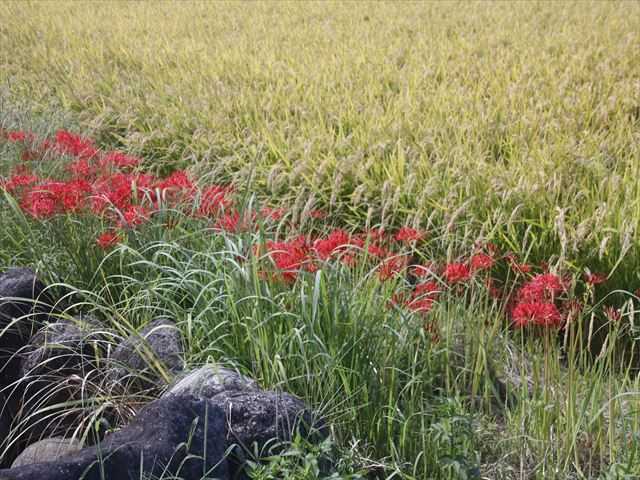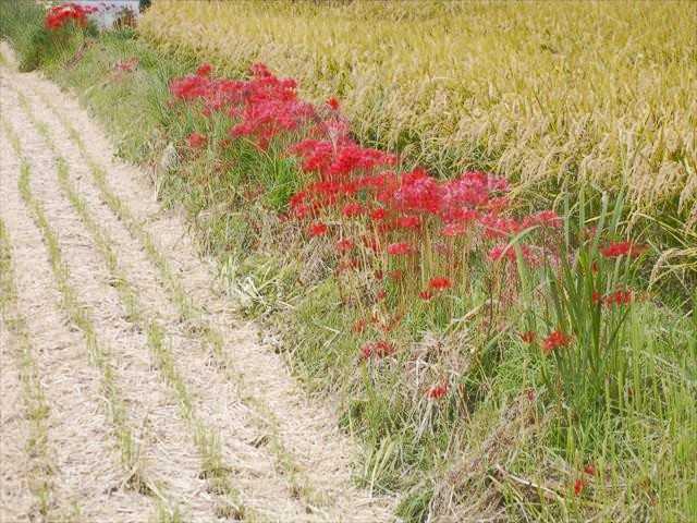 稲刈りが終わり畦道には彼岸花が咲いていた。