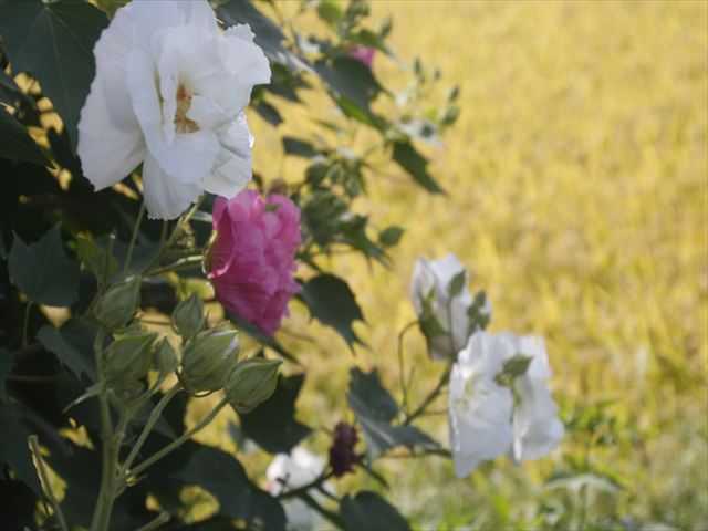 また「いつも祭りが終わった後、酔芙蓉は満開になる」と。