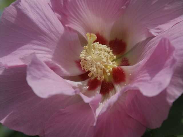 咲き始めの白の酔芙蓉をズームアッㇷ゚。