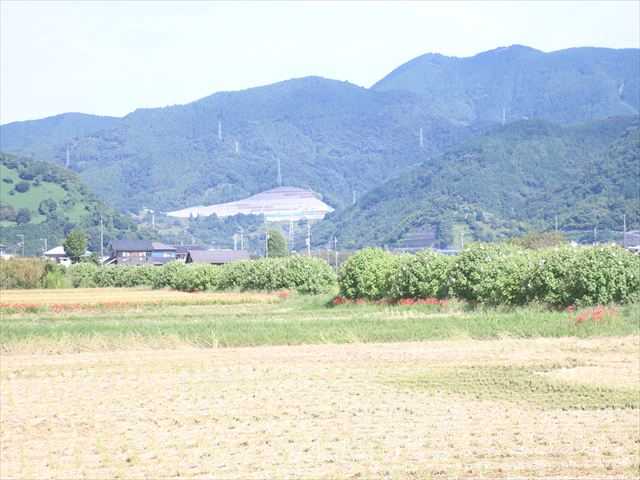 北側の山肌には、新東名高速道路の高松トンネルの出口(西側)付近の工事現場。