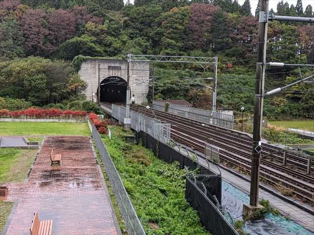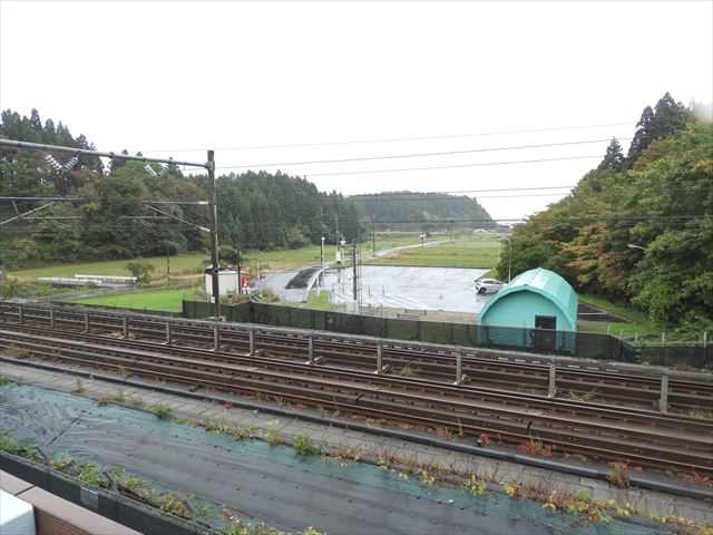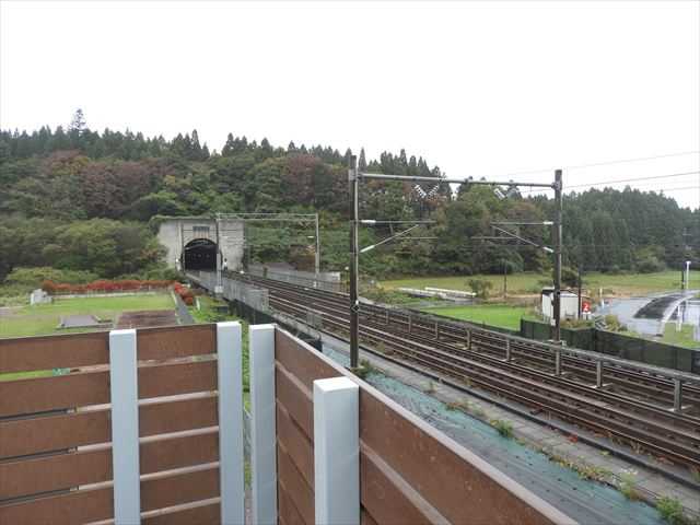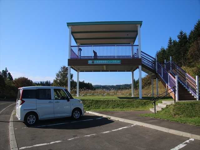 高さ約4メートルの展望台から、新幹線の線路を見下ろします。木古内駅から約3キロの