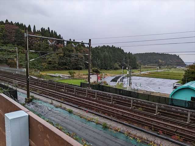 木古内の北海道新幹線ビュースポットに比べ低いので三線軌条が確認できにくい。
