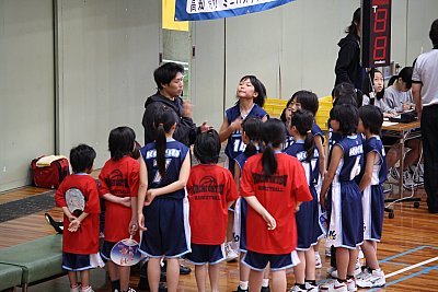 ミニバスの春季大会がありました。対戦はA~Gグループに別れリーグ戦を行い。各チーム1位が決勝トーナメントへ進出できます。3号が所属の大津MBCは抽選の結果Eグループ。他の2チームは「〇〇うち」と「〇浜」。「〇〇うち」は去年のメンバーが結構残っていて現時点で4強に入るであろうといわれる強敵です。 初戦は対「〇〇うち」戦。6年生になって初の公式戦ですが相手が相手なので、かなりの苦戦が予想されます。結果は22対53で完敗でした。こちらは去年試合に出てた経験者が3人だけで、マッチアップもまともに出来ないので無理もありませんが、現時点での差は結構大きいですね。3号は1、3、4Qに出場しましたが、1Qは3号1人に対しマークが3人もついて完全に押さえこまれてしまってました。それでもなんとか2ゴールは決めたんですが・・・。3、4Qも焦りすぎか、皆いつもなら入るシュートが決まりません。じりじりと引き離されてしまった感じです。 次は対「〇浜」。春先の練習試合では勝利した相手ですが、今回はどうなることでしょう。父兄同士は勝てるだろうが結構白熱した接戦になるのではなんていってましたが・・・。結果は32対24で何とか勝てました。でも練習試合の時と比べると実力差はかなり詰まっている感じです。うちのチームが足踏みしてる間に向こうは着実に力をつけてきている感じでしょうか。 予選リーグの結果は1勝1敗でグループ2位。残念ながら決勝トーナメントには進めませんでした。 試合開始直前監督の指示を受けます。 ドリブルで敵陣に切り込むキャプテンのMちゃん 5年生ながらチーム1のテクニシャンのRちゃん ドリブルでボールを運ぶ3号 審判を終え、控え室に向かうコーチ、胸のワッペンが光ってます。 「この試合は勝たなくては!」 最後は親ばかですが3号のシュートシーンを連写でどうぞってだれも見たくないかもね。笑