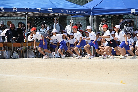 24日の日曜日は3号(6年生)と4号(2年生)の運動会でした。3号は白組み、4号は赤組と別れてしまいましたがどちらもガンバレ! まずは4号のクス球割。両チームともあっとう間に割れてしまい。4号がどこにいるかもわからず。 次は3号の100m走。ヨーイ スタート! 反応よく飛び出した3号(左から2人目) ここで抜け出すと ぐんぐん差を広げます。 コーナーもうまく廻って直線へ 直線でさらに加速して そのまま 1着でゴール! (右端が3号) 次は4号の100m走スタート前、緊張の4号(右から3番目) スタートの反応はよく、この時点ではトップ! あれ?(この時点で3位) 次の写真をアップしようとしたら、「1日のアップ可能制限を越えてしまいました」と出てあっぷできません。続きは明日以降ということで・・・