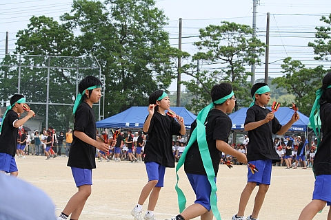 少し間があきましたが、運動会の続き。騎馬戦が終わり、運動会のプログラムもあと少し次は3号のよさこい鳴子踊り。(よさこいといえば札幌のよさこいソーランが有名ですが、本家本元は高知のよさこい鳴子踊りです。けっして観光協会の回し者ではありません。) よさこい踊りも終わり、いよいよ残すは紅白責任リレーです。今年はプログラムが少し変更され、男女混合で1~3年生は午前中の最後、4~6年生は午後の最後となっています。点差は赤がリード、白が勝てば逆転勝利。3号は白、4号は赤なんですが、3号にとっては最後の運動会なので、少しだけ白をよけめに応援します。4・5年生が走りいよいよ3号の番です。現在2位、バトンを待つ緊張の時 バトンタッチの瞬間 1位を必死で追いかけます。 少し差がつまりましたが、まだまだです。(左端に1位の子の足が写ってます) 最後のコーナーに差し掛かります。 あと少しでしたが、追い抜けず2位のままバトンを渡しました。 3号の白(白)は、最後アンカーの男の子が抜いて1着でゴール。最終順位は、1着白(白) 2着白(青) 3着赤(赤) 4着赤(黄)となり、白組が逆転勝利!3号は最後の運動会を勝利で終えることが出来ました。負けた4号はご機嫌斜めでした。爆 ******************** 今日、大好きな先輩の告別式でした。YEGの先輩であり、1・2号にとっては、空手の先輩でもありました。あの人懐っこい笑顔を、もう見ることが出来ないと思うと残念でなりません。訃報を聞いたときは本当にショックでした。今日の告別式では、恥ずかしながら涙を流してしまいました。 ご冥福をお祈りします。