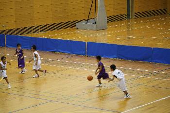5年生以下大会の2日目です。前日の夜更かしにも負けず、6時半過ぎに起床。7時朝食。何か月ぶりかに、朝ご飯の御代わりをしました。8時頃会場に向けて出発。2日目は2試合でした。第一試合 大津 44-15 O方第二試合 大津 16-48 U江南2日目は1勝1敗。4号2試合共1・3・4Qに出場。2試合共ガードとして頑張ってました。まだまだ課題が多い4号ですが、小学3年生としてはまずまず合格点でしょうか。(親バカですいません)チームとしては2日間5試合で、成績は2勝3敗でした。 現時点での自分達の力を思い知らされた5年生以下大会でしたが、悔しさをバネに練習を頑張って欲しい物です。ドリブルでボールを運ぶ4号 コーチから作戦板を使って指示を受けてます 保護色(爆) それにしても暑かった!体育館といえども、夏はクーラーを付けるべきだと私は思うんですけどね。県外ではこういう大会があると殆どクーラーが効いてるようで、県外チームが高知にくるとクーラーが効いてないのにびっくりするようです。今回の体育館のように空調設備がない(比較的新しい建物にもかかわらず空調設備がないなんて設計ミス以外のなにものでもない)場合はしょうがないと思いますが、そうでない場合は協会ももう少し考えてもらいたいと思います。1時間当たり8000円程度余分に費用がかかるとしても各チームに割り振れば、一人当たり1000円までですむと思うんですがね。