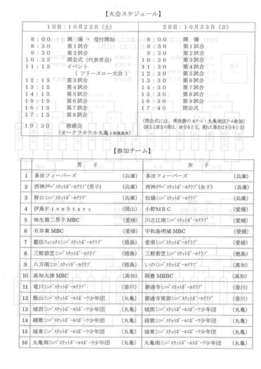 土曜、日曜と香川県の丸亀市で行われたサンセバスチャン杯に参加してきました。この大会は「kampo杯」→「丸亀ライオンズ杯」→「サンセバスティアン杯」と名称が変わってきており、通算で13回目。現在の名称になってからは今年で5回目のようです。参加は男女各16チームで、今年は高知県からは男子1チーム女子2チームが参加。組み合わせ表は下記のようになってます。 4つのブロックに別れ、初戦に勝てば決勝トーナメントへ進出。負ければ順位決定戦へ回るというものです。大津としては3年ぶりの参加、4号はもちろん初めて、我が家としては3年前3号が5年生の時女子チームで参加、その時は3位入賞でした。 初日の結果は 大津 24 - 43 飯山(香川) 大津 23 - 88 西神戸(兵庫)と2連敗。 負けましが、頑張ってる気持が感じられる試合でした。 宿泊先はオークラホテル丸亀。チェックインしてすぐ入浴タイム。展望大浴場(サウナ付)があると聞いてたので楽しみに風呂場へ直行!体を洗いサウナ部屋へ入ったんですが、部屋の中が暑くない。室温をみると38度・・・。せっかく楽しみにしていたサウナなのにしょうがないので湯船に浸かったんですがぬるい・・・。体があったまらないちょっとがっくしきて部屋へ戻りました。TVを見て少し時間をつぶした後、夕食へ。夕食はバイキングと聞いてたので想像してたのはこんな感じ。で夕食会場へ行くと、何故か広間の和室。おまけに料理は廊下に並べています。しかもトイレの前・・・。この時点でテンションガタ落ち。料理はカレー、えびフライ、しゅうまい、焼きそば、とんかつ、サラダ(殆どキャベツのみ)、フルーツポンチだけ、しかも飲み物は水のみ。従業員は従業員で頼みもしないのにカレーをよそって渡してくるし、思わず「俺はカレーは喰いたくない」と言ってしまいました。機嫌を直して食事をとっていましたが、やはりお茶が欲しくなって熱いお茶が飲みたくなってお茶を頼んだんですが、出てきたお茶がお茶ではなくほぼ白湯。10分程まってみましたが、結局出がらしだったようで、白湯で我慢しました。結局腹半分で夕食を終えました。チェックインして2時間半足らずでこれほど気分を害したホテルも初めてでしたね。 夜の9時頃からは保護者とコーチでいつものごとく反省会。今回初めて反省会に参加されたK君のご両親。お二人とも宴会向きのキャラで大盛り上がり。気がつけば深夜2時前。バスケは弱いけど反省会の賑やかさではおそらく優勝でしょう! 2日目 大津 10 - 66 多田(兵庫) 大津 20 - 52 野口(兵庫)結局全敗でした。 優勝したのは石井東(愛媛)。#4のプレーなんか見ててほれぼれするようなプレーでした。でも、優勝したチームでさえ四国大会に出れてないということを考えると、いかに県外のレベルが高いかということですね。4号は今4年生なので、この悔しさを胸に来年、再来年はもっといい成績を残してもらいたいものです。ドライブで切り込む4号 同じく4号 ボールを運ぶ4号 ************************** サンセバスチャン杯の1週間前の16日には、5年生以下大会がありました。結果は1勝1敗でした。 22日の土曜日は高校バスケウインターカップの県予選がありました。1回戦は順当勝ちしたものの、2回戦でK工業に敗退。支部体の雪辱をされてしまいました。金曜日まで中間テストとだった(ほぼ10日間自主練のみで部活動をしてなかった)のと相手は3年生が出場ということを踏まえたらしょうがないんでしょうが言い訳にしかなりませんよね。
