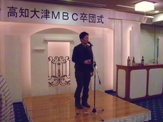 22日はT小学校の卒業式でした。祝辞。緊張でかみかみでした。(涙)知らなかったんですが、入学式や卒業式の祝辞は、歴代PTA会長のものがきちんと保管されているそうです。う~んへたなこと言えませんね。(笑)事前に教頭から1分半以内でお願いされていたので、短めにまとめたんですが、校長の式辞は約10分程と気合が入ってましたね。今年で定年退職されるということもあって、送り出す最後の卒業生への思いをたくさんつづられてました。橋本大阪市長じゃないですが、以前国家斉唱の件で学校長(2代前の校長)に文句をいったこともある私。今年も先生方をみてたんですが、なんと私の視野に入っていた先生方は全員歌ってました。さすがです。以前は校長、教頭以外は歌ってませんでしたからね。やはり橋本さんの影響なんでしょうかね。私のへたな挨拶以外は素晴らしかった卒業式も無事終了。少しほっとしてるんですが、来月はすぐ入学式。PTA総会、教職員の歓送迎会等またしばらくは忙しくなりそうです。 24日は今年でT小PTAを卒業されるK前会長の送迎会でした。5年間の副会長職のあと6年間会長職をなされ、最後の1年間は顧問をされていました。Kさんは私がJC(高知青年会議所)に入会した時のアカデミー委員会(新入会員をお世話し教育する委員会)の委員長だった方で、以来色々とお世話になりっぱなしで、頭が上がらない先輩の一人です。場所は「建ちゃん」という地元の居酒屋さんでした。本物のししゃも、ごりの唐揚げ、鴨鍋等料理も美味しく、おおいにもりあがりました。2次会は副会長のYさん宅。ご主人がK前会長の小学時代からの友人ということで、煮込みを作って待っていてくれてるとのことでした。7人で押し掛けたんですが、絶品の牛すじ煮込みやほくほくのジャガイモ等ごちそうになりました。結局1時過ぎまでお邪魔していました。Yさん御馳走様でした。 K前会長長年のPTA活動本当にお疲れ様でした。これからは青少協で頑張ってください! 結局帰宅したのは1時半ころだったんですが、同じ日飲み会があった嫁はまだ帰宅してませんでした。(爆)