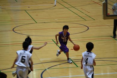 会場を黒潮アリーナに移しての2日目。4号達は午前中学校の体育館で2時間ほど練習してから会場へ。私は先に会場で他の試合を観戦。 いよいよ試合です。対戦相手はK田さん。この試合に勝てれば決勝トーナメント進出です。この日はいつもと違い、普段第2Qに出るメンバーが先発出場。これが当たったのか第1Q 大津 17-8 K田 と絶好の滑り出し。 第1Qは#10 T君が大活躍。 続く第2Qは両チーム互角の戦い 大津 8-8 K田前半終わって25-16と9点リードで折り返しです。 第3Qペースを握ったのは大津でした、メンバー全員が今までにないような動きをみせて大津 19-6 K田 とリードを広げました。この試合一番活躍したのは#5 Y君。今までで一番のパフォーマンスでした。 最終Q、K田さんも粘りをみせて追いすがってきます。両チーム共に頑張り大津 12-10 K田。 最終結果は 大津 55-32 K田 と勝利することができました。新チームになって最高のゲームでしたね。応援席も大いに盛り上がりました。やはり一生懸命なプレーは感動しますね。これでまさかの決勝トーナメント進出です。土曜日はベスト4をかけて予選4組2位のチーム(T島とJ北の勝者)と対戦。どちらがきても実力は向こうが1枚も2枚も上手。今日のようなプレーが出来れば少しは善戦出来るかもしれません(極甘の期待ですが 笑)。 4号は先日のスポ少に引き続き、今日も5Fで退場。ディフェンスに課題有りですね。