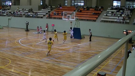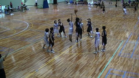 いわゆる市体が、6月2日土曜日から始まりました。この大会で、上位7チームに残れば、県体への出場権を獲得出来ます。組合せでは、3号達F属中は1回戦はシード。2回戦でT塾中とM里中の勝者と対戦。県体に出場するには、この2回戦に勝って、とりあえずはベスト8に残ることが肝心です。土曜日の1回戦で勝利したM里中学に対戦相手が決まりました。 試合当日(日曜)は4号の強化選考会と重なってまして、朝、会場のよこうち小学校まで4号を送り届けてから試合会場の春野体育館へ向かいました。負ければ引退となる試合、試合前3号は緊張でガチガチでした。こんなんでまともにプレー出来るのかと少し不安がよぎりました。 いよいよ試合開始です。第1Q、先制したのはF属中。しかしM里中2本の3Pシュートで反撃。F属中も2点返して4-6。その後M里中、2本の3Pを含む3連続得点で4-14とリードを広げます。F属中もインサイドの攻撃で反撃し、第1Qは16-21とM里中が5点のリード。M里中第1Qだけで5本の3Pを決めています。白のユニフォーム#5が3号 第2Q、M里中が#10(2年生)の連続ポイントでリードを広げますが、F属中もすぐ反撃。が、M里中さらに得点を伸ばし、第2Q半ば過ぎでF属22-33M里と差は11点差になりました。しかしここまで劣勢のF属中もここから反撃を開始、4連続ポイントを上げ、F属30-33M里と3点差まで差を縮め前半終了。 ハーフタイムをはさんでの第3Q、なんとか第2Q終盤の勢いを持続したいところです。開始早々連続得点でついに逆転34-33!この試合最初の得点以降初めてのリード。しかしM里中も得点を決め再逆転。F属34-35M里ここでF属中キャプテンが一人でボールを運びそのままシュート、またまた逆転。これで勢いにのったのか、F属中4連続ポイントで42-35と7点差としました。このまま差を広げ10点差以上で第4Qを迎えたかったんですが、M里中も粘り、結局F属44-39M里。5点差で最終Qを迎えます。 いよいよ最終Q、先手をとったのはF属中。その後も3号まぐれの3連続得点でリードを広げ52-42と10点差。M里中も最後の必死の反撃をしますがタイムアップ。最終 F属58-46M里でした。 なんとか勝てましたが、冷や汗の出る勝利でした。M里中とは冬場に1度練習試合をしたということでしたが、その時は勝てなかったようで、3号達もドキドキしてたと思います。M里中は2年生主体(確か1年生大会で優勝?したとかしないとか)の素晴らしいチームでした。来年が楽しみですね。 このゲームF属中は #4 Nちゃん 16点 #5 3号 20点 #7 Iちゃん 6点 #8 Mちゃん 16点 計58点 M里中は #4 6点 #5 8点 #10 19点 #11 2点 #13 4点 #17 7点 計46点 続く3回戦では、強豪高知M中と対戦。結果はF属18-87高知Mけちょんけちょんのボロボロにされました。県体出場はおあずけ。この日県体出場を決めたのは、K知、I宮、A柳、高知Mのシード4校。来週残る3つの座を4校で争います。抽選で対戦相手はN海中に決まりました。頑張れF属中!