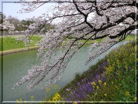 昨日は、「皇居」周辺に桜を見に行ってきました、都内は3/22(月)に、開花宣言がでましたが、その後毎日寒い日が続き、染井吉野はまだ3分咲きで、山桜や緋寒桜が見頃でした。「日比谷公園」では、チューリップが咲き始めていましたが、こちらも見頃はもう少し先のようです。<春爛漫も寒い1日>1)「田安門」牛ケ淵の染井吉野と菜の花 ~ 2)・3) 千鳥ヶ淵で1本だけ満開の山桜 ~ 4)-6) 国立劇場のピンクが鮮やかな緋寒桜 ~ 7)・8) 日比谷公園チューリップ