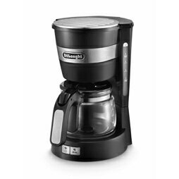 ドリップコーヒーメーカー「ICM14011J」 ボタン操作で簡単にじっくりと蒸らしながらコーヒーを淹れる製造/販売デロンギ製品情報ドリップコーヒーメーカー「ICM14011J」価格比較ここをクリック 本体サイズが 180×200×270mm(幅×奥行き×高さ)というコンパクトサイズが特徴のコーヒーメーカーで、コーヒーをおいしく淹れるための基本機能にこだわった抽出機能を備えた点が特徴。ハンドドリップに近い間欠抽出でコーヒーの粉を蒸らし、コーヒーの風味を最大限に引き出すという「アロマボタン」や、コーヒーの脂分を逃さず、旨み豊かなコーヒーを抽出する「ペーパーレスフィルター」を搭載する。さらに、コーヒーの抽出開始時と完了時に音で知らせるお知らせ機能を採用。抽出後はコーヒーの風味を壊さない 82~83℃で保温し、40 分後に保温ヒーターを自動で OFF にする。本体重量は 1.2kg。消費電力は 600ml。最大容量は 650ml で、125cc のコーヒーカップが 5 杯分、300cc のマグカップが 2 杯分作れる。本体カラーはブラック。
