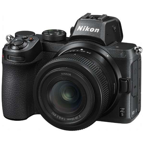 デジタル一眼レフカメラ「Nikon Z5」 画素数や手ぶれ補正、重さは上位機Z6とほぼ同じ製造/販売ニコン製品情報デジタル一眼レフカメラ「Nikon Z5」価格比較ここをクリック 上位機 Z7 と Z6 と外観や操作性が共通設計のミラーレス一眼カメラ。見やすい電子ビューファインダー(EVF)や、握りやすいグリップなどが受け継がれている。ボディの作りがしっかりしているのも特徴で、前カバーとトップカバーにマグネシウム合金を使用し、高い堅牢性を確保。ボディ各所にシーリングを施し、Z7/Z6 と同等の防塵・防滴性能も実現している。撮像素子は有効 2432 万画素の CMOS センサー(裏面照射型ではない)で、画像処理エンジンは Z7/Z6 と同じ最新の「EXPEED 6」。静止画の感度は常用で ISO100~ISO51200、増感で Hi 1(ISO102400相当)に対応する。AF システムは Z6 と同等となる 273 点の測距点を持つ、像面位相差 AF とコントラスト AF のハイブリッド AF。顔認識AF ・瞳AF は人物に加えて動物(犬と猫)にも対応。動画撮影時は人物・動物とも顔認識AF の利用が可能だ。シャッタースピードは最高1/8000秒に対応。電子シャッターによるサイレント撮影機能も搭載し、こちらもシャッタースピードは最高1/8000秒となっている。5軸補正対応のボディ内手ブレ補正も搭載しており、Z7/Z6 と同等となる約 5.0 段分の補正効果を実現した。撮影機能としては、テーマごとに色合いや階調などが細かく設定された全 20種類の「クリエイティブピクチャーコントロール」などが用意されている。メモリーカードスロットに SD カードのダブルスロットを採用した。両スロットとも UHS-II に対応している。上位モデル Z7/Z6 は XQD カードのシングルスロットで、Z50 は SD カードのシングルスロットなので、Z5 はニコンのミラーレスとしては初めてのダブルスロットモデルとなる。無線通信機能として Bluetooth と Wi-Fi を内蔵し、快適な動作で評価を得ているスマートデバイス用のアプリ「SnapBridge」に対応。撮影したオリジナル画像(RAW/JPEG)をスマートデバイスに転送できるほか、スマートデバイスからリモート撮影を行うなども可能だ。参考サイトNikon Z5 実機レビュー = ニコンの決意が生んだ「超お買い得カメラ」だった:ASCII【主な仕様】撮像素子35.9×23.9mm CMOS,ニコンFXフォーマット×1有効画素数 2432万光学系ミラーレス一眼レフレンズマウント ニコンZマウント(Fマウントはマウントアダプターを付けて使用可能。ただし一部機能制限あり。)シャッター速度 1/8000~30秒,バルブ(電子制御上下走行式フォーカルプレーンシャッター、電子先幕シャッター、電子シャッター)モニター 3.2型(チルト式,約104万ドット,視野角170°,視野率 約100%,タッチパネル)電子ビューファインダー 0.5型(倍率 ×0.8,視野率約100%,約369万ドット)手ぶれ補正 あり(イメージセンサーシフト方式5軸補正。VRレンズ使用時はレンズシフト方式。)露出制御測光方式 撮像素子によるTTL測光方式測光範囲 -3~17 EV(ISO 100、f/2.0レンズ使用時、常温20℃)測光モード ・マルチパターン測光・中央部重点測光:φ12mm相当を測光(中央部重点度約75%)、画面全体の平均に変更可能・スポット測光:約φ4mm相当(全画面の約1.5%)を測光、フォーカスポイントに連動して測光位置可動・ハイライト重点測光ISO感度 100~51,200(1/3、1/2ステップ)露出補正 範囲:±5段、補正ステップ:1/3、1/2ステップ露出モード オート、P:プログラムオート(プログラムシフト可能)、S:シャッター優先オート、 A:絞り優先オート、M:マニュアルユーザーセッティングU1~U3に登録可能画像処理画像処理エンジン EXPEED 6多重露出 加算、加算平均、比較明合成、比較暗合成アクティブD-ライティング オート、より強め 、強め、標準、弱め、しないHDR(ハイダイナミックレンジ)静止画フリッカー低減撮影ピクチャーコントロールシステム オート、スタンダード、ニュートラル、ビビッド、モノクローム、ポートレート、風景、フラット、Creative Picture Control(ドリーム、モーニング、ポップ、サンデー、ソンバー、ドラマ、サイレンス、ブリーチ、メランコリック、ピュア、デニム、トイ、セピア、ブルー、レッド、ピンク、チャコール、グラファイト、バイナリー、カーボン)、いずれも調整可能、カスタムピクチャーコントロール登録可能ホワイトバランス オート(3種)、自然光オート、晴天、曇天、晴天日陰、電球、蛍光灯(7種)、フラッシュ、色温度設定(2500K~10000K)、プリセットマニュアル(6件登録可)、色温度設定以外は微調整可能静止画記録最大解像度 6,016×4,016 ピクセル記録方式 JPEG, RAW(12/14bit), JPEG + RAW連写 最大約 4.5コマ/秒動画記録最大 3,840×2,160, 30p(記録方式 H.264/MPEG-4 AVC)音声 ステレオ(記録方式 リニアPCM,AAC)記録メディアSD/SDHC/SDXCメモリーカード(UHS-II規格に対応)×2インターフェースUSB Type-C(HDMI端子兼用)×1外部マイク(ステレオミニジャック,プラグインパワーマイク対応)×1ヘッドホン出力(ステレオミニジャック)×1アクセサリーターミナル×1無線LAN IEEE802.11b/g/n/a/ac×1Bluetooth Ver.4.2×1本体サイズ(幅)134×(奥行)69.5